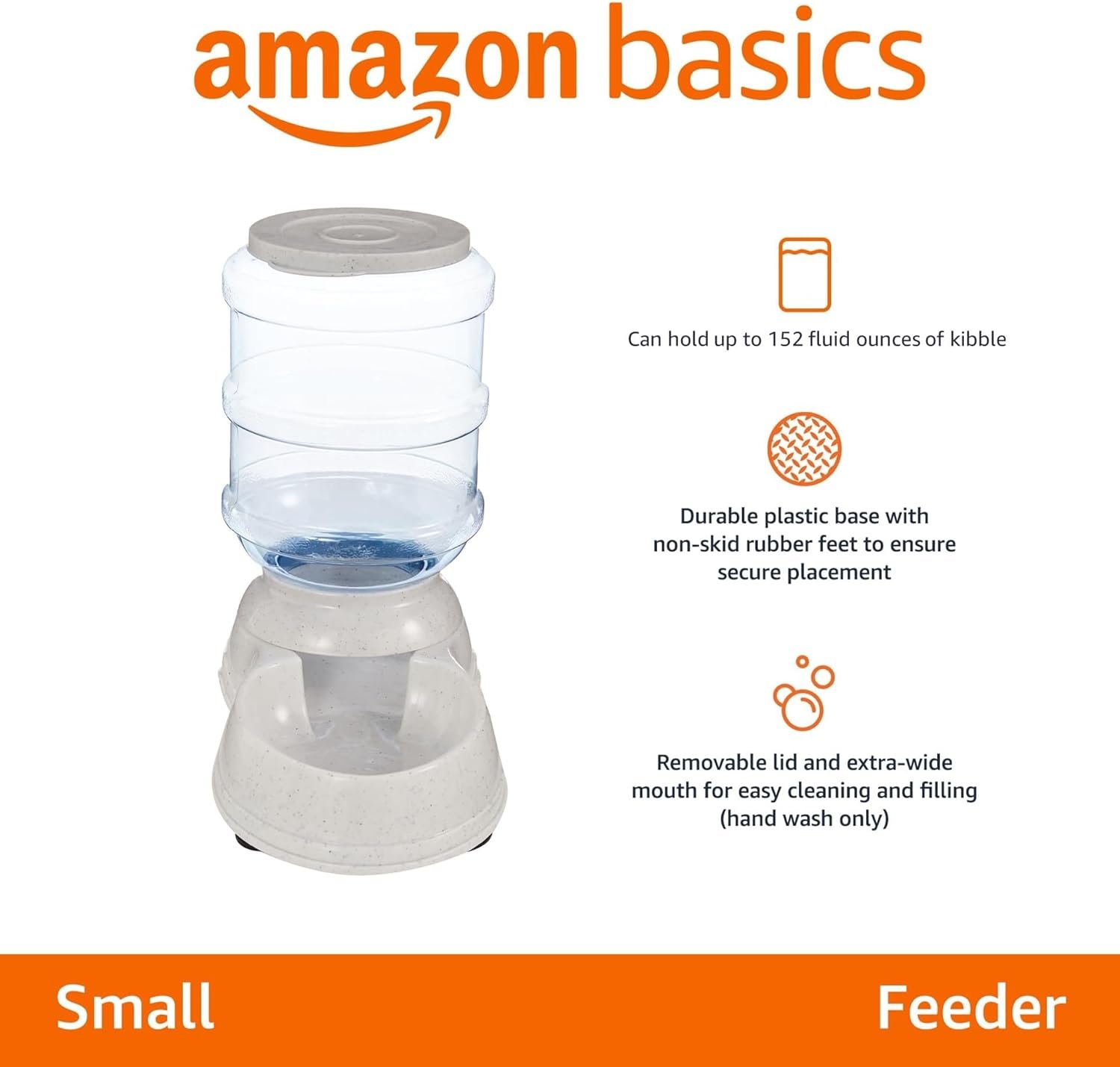 The Amazon Basics Gravity Pet Water Dispenser provides a simple, reliable way to keep your cat or small dog hydrated throughout the day without constant refilling. Featuring a 1-gallon (135 oz) transparent PET reservoir, this gravity-fed waterer automatically refills the bowl as your pet drinks. The durable base with anti-skid rubber feet keeps it secure, while the wide mouth and handles make refills and cleaning easy. Ideal for busy pet owners or indoor use, this affordable dispenser ensures fresh water is always available.