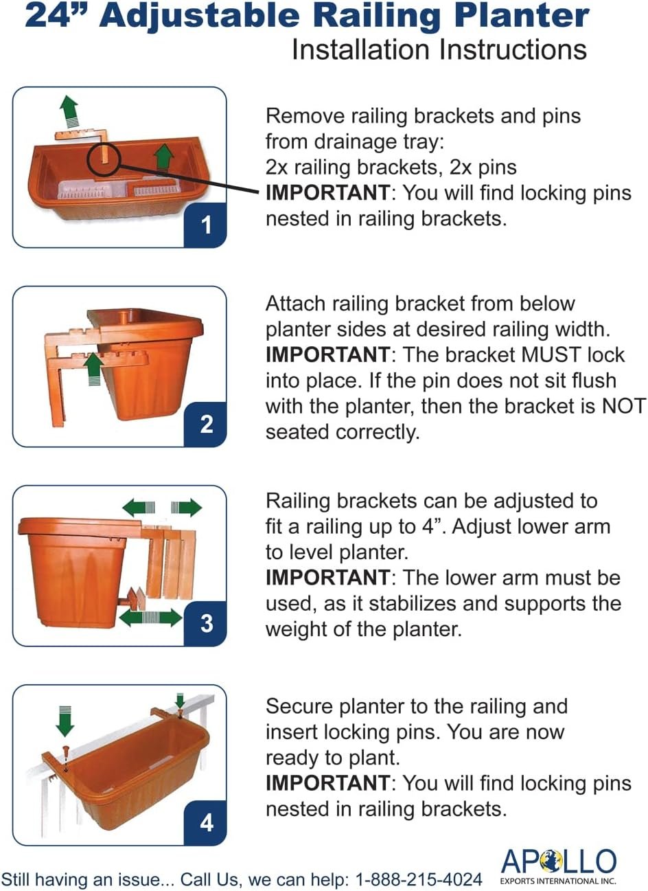 In summary, the Apollo Exports International AP-30312 24″ adjustable railing planter is an excellent choice for stylish, stress-free gardening—combining reliability, innovative design, and curb appeal for any outdoor living space. Ready to transform your railing? Click here to check latest prices and see more details.
