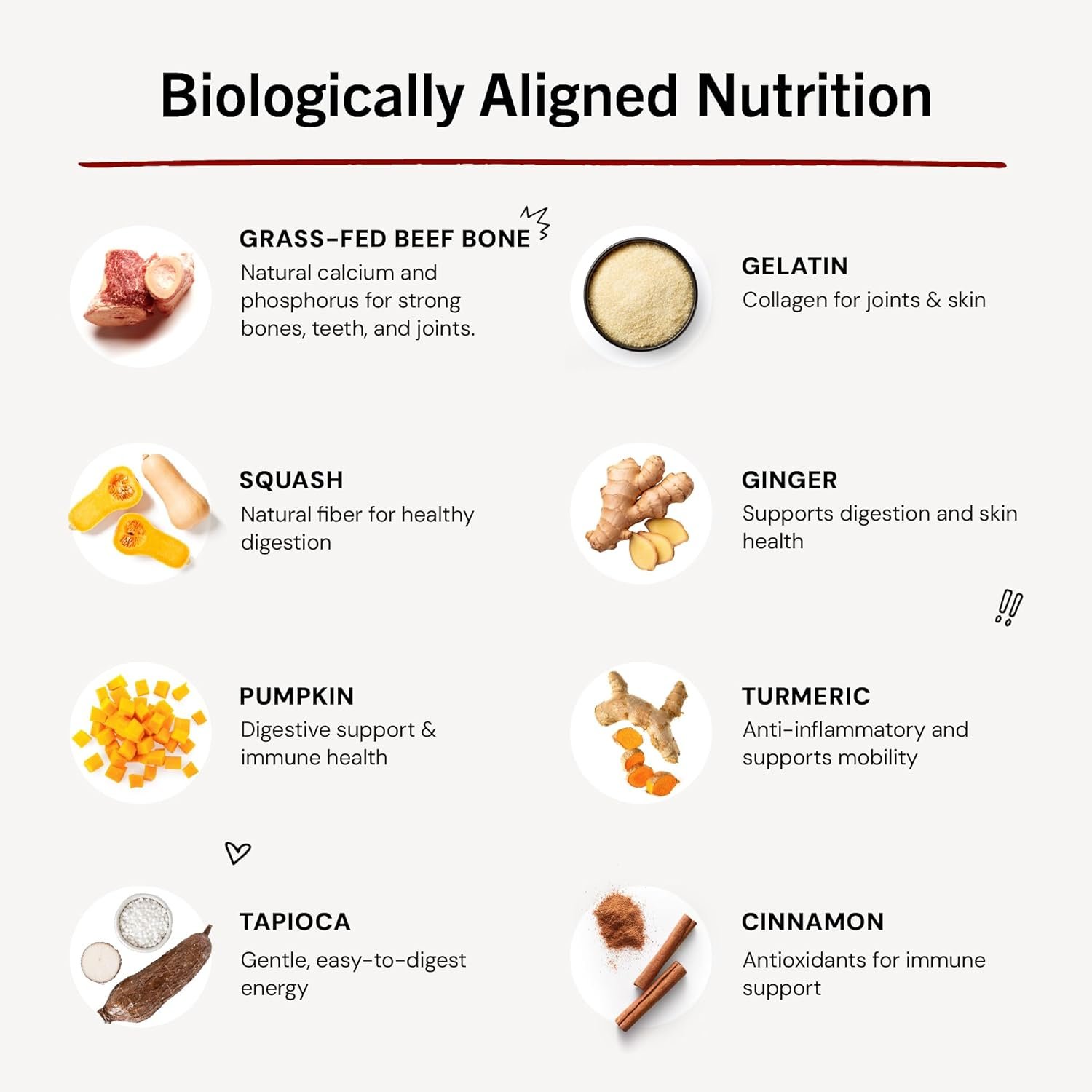 • Bone Broth Supplement: Slowly simmered in small batches, this premium dog food topper offers beneficial collagen for joint support.