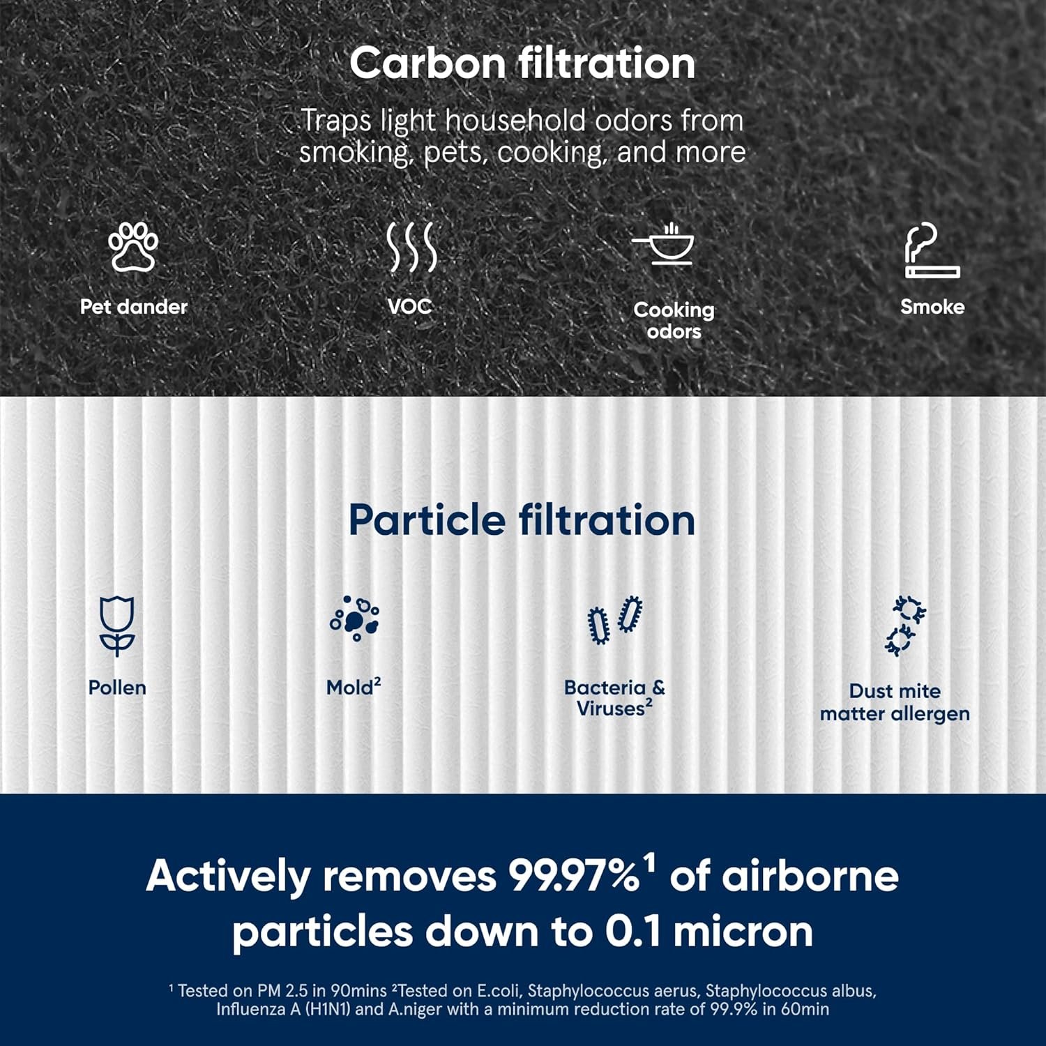 - Activated Carbon Technology: Traps light household odors and VOCs, making it ideal for allergy season or simply keeping your space smelling fresh.