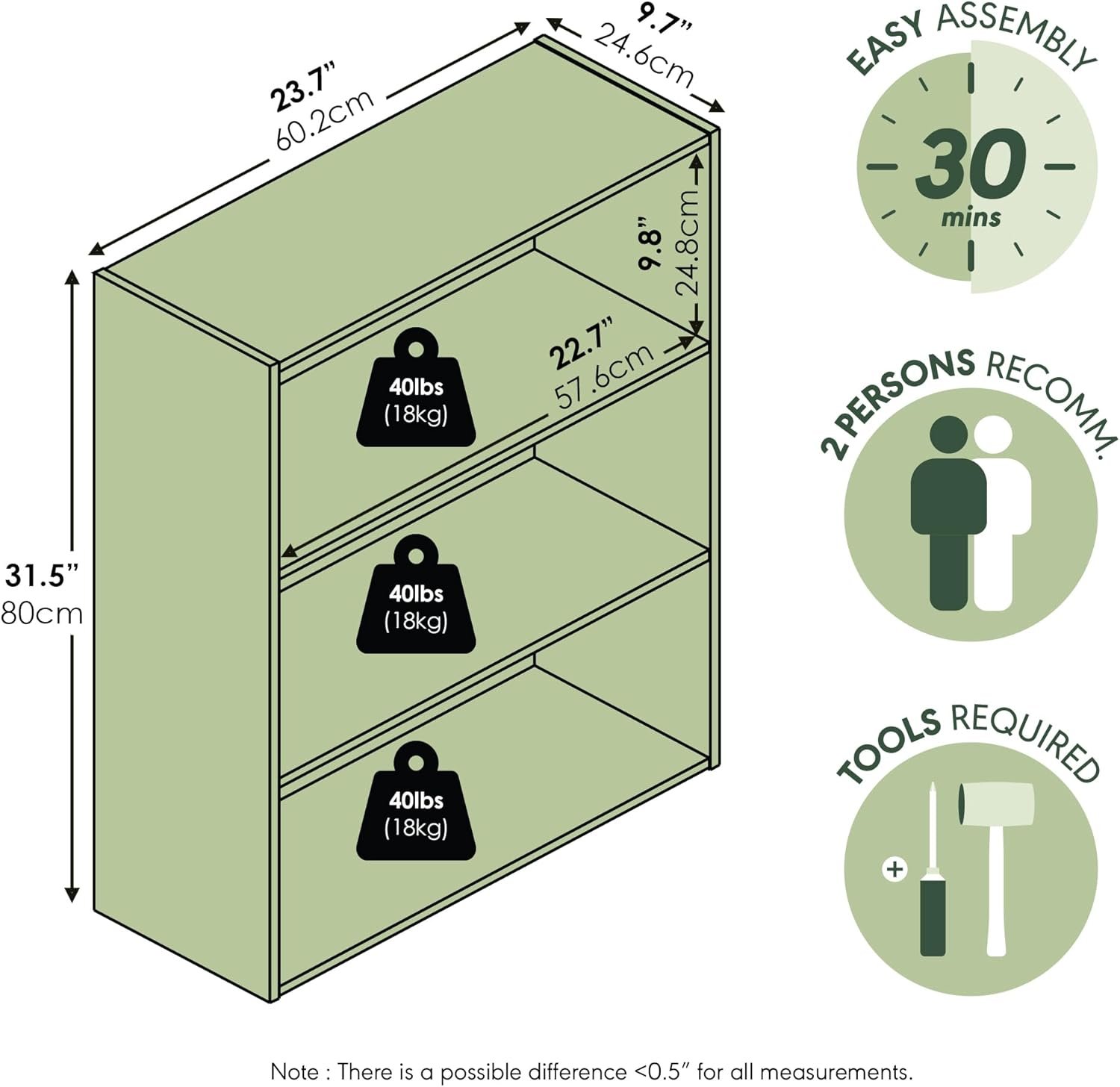 - Simple Assembly & Space-Efficient Build: The 3 tier bookshelf arrives with straightforward assembly instructions. At just 9.7(D) x 23.7(W) x 31.5(H) inches, it fits tight spaces and can be repositioned as a living room bookshelf or compact shelving solution in apartments or dorms.