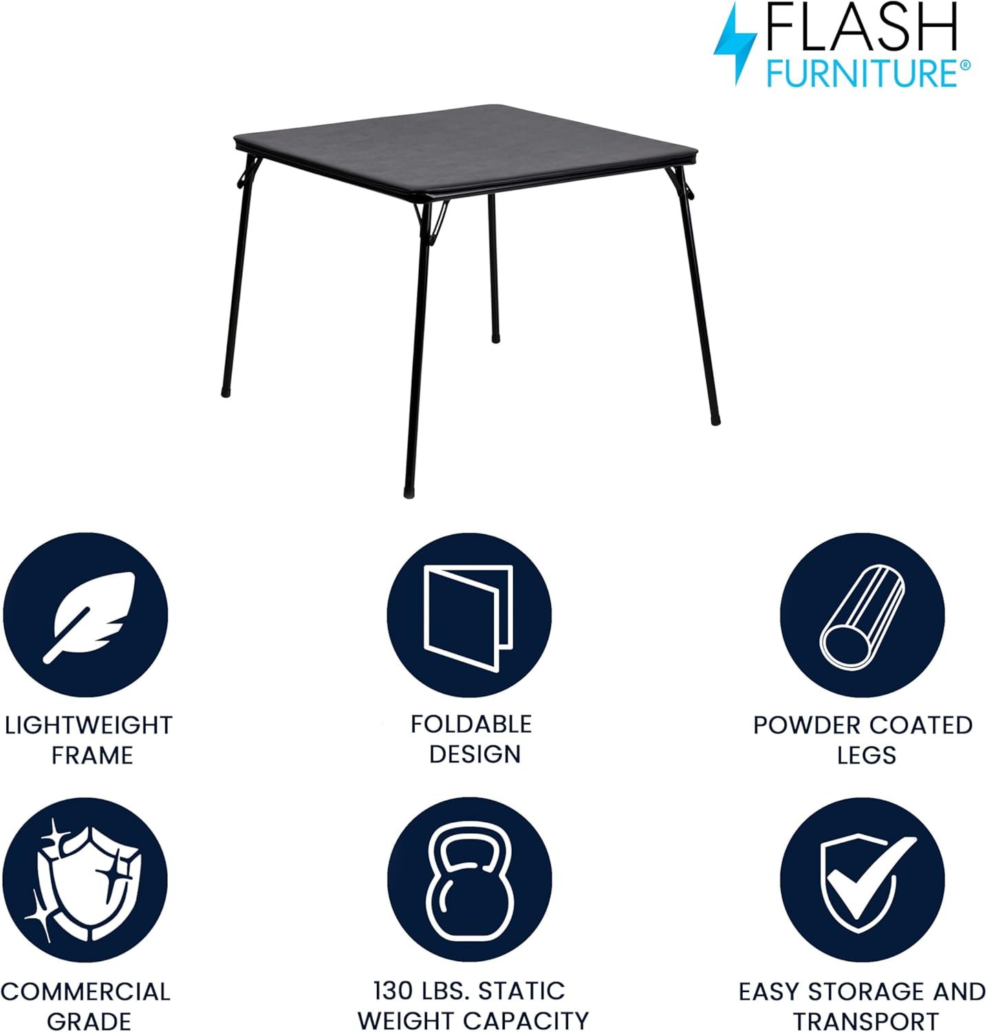 The Flash Furniture Madelyn 33.5" Square Folding Multipurpose Card Table is the ideal choice for game nights, family gatherings, and parties, comfortably seating up to four players. Crafted with a nonslip, padded vinyl top to keep cards and pieces in place, its portable, lightweight design and collapsible legs make setup and storage a breeze. No assembly is required, so you can enjoy instant functionality wherever you need extra table space. Durable construction and versatile use make this card table from the Flash Furniture Store a top pick for any occasion.