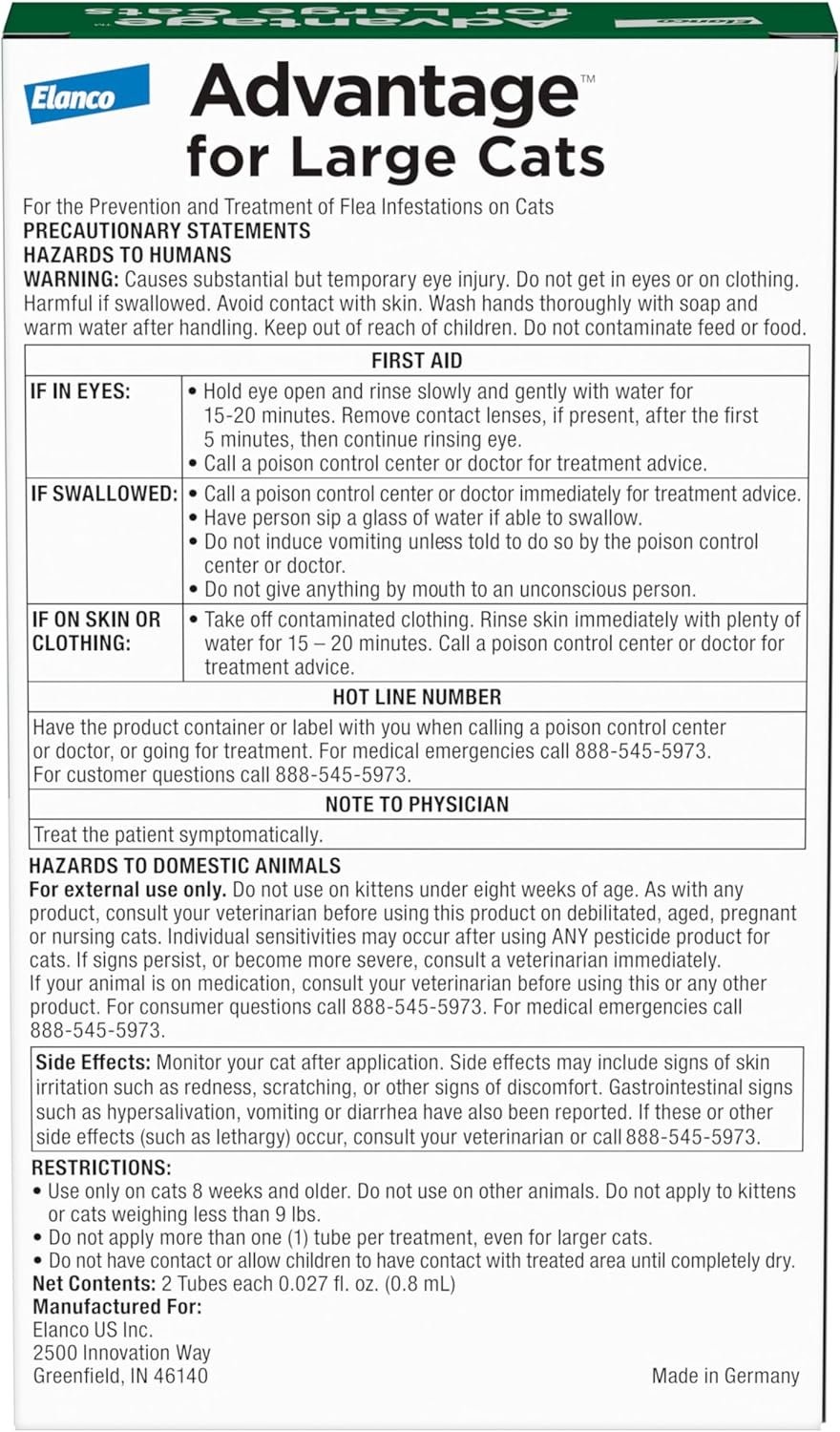 Protect your feline friend with Advantage Topical Cat Flea Treatment and Prevention for Large Cats Over 9 lbs., a trusted solution from the Advantage Store. This easy-to-apply, fragrance-free, and waterproof formula starts killing fleas within 12 hours and provides a full month of protection per treatment. Designed for cats over 9 lbs. and at least 8 weeks old, Advantage offers both value and peace of mind—no pills required. Give your cat fast-acting, long-lasting flea control with a brand that’s kept pets safe for over 20 years.
