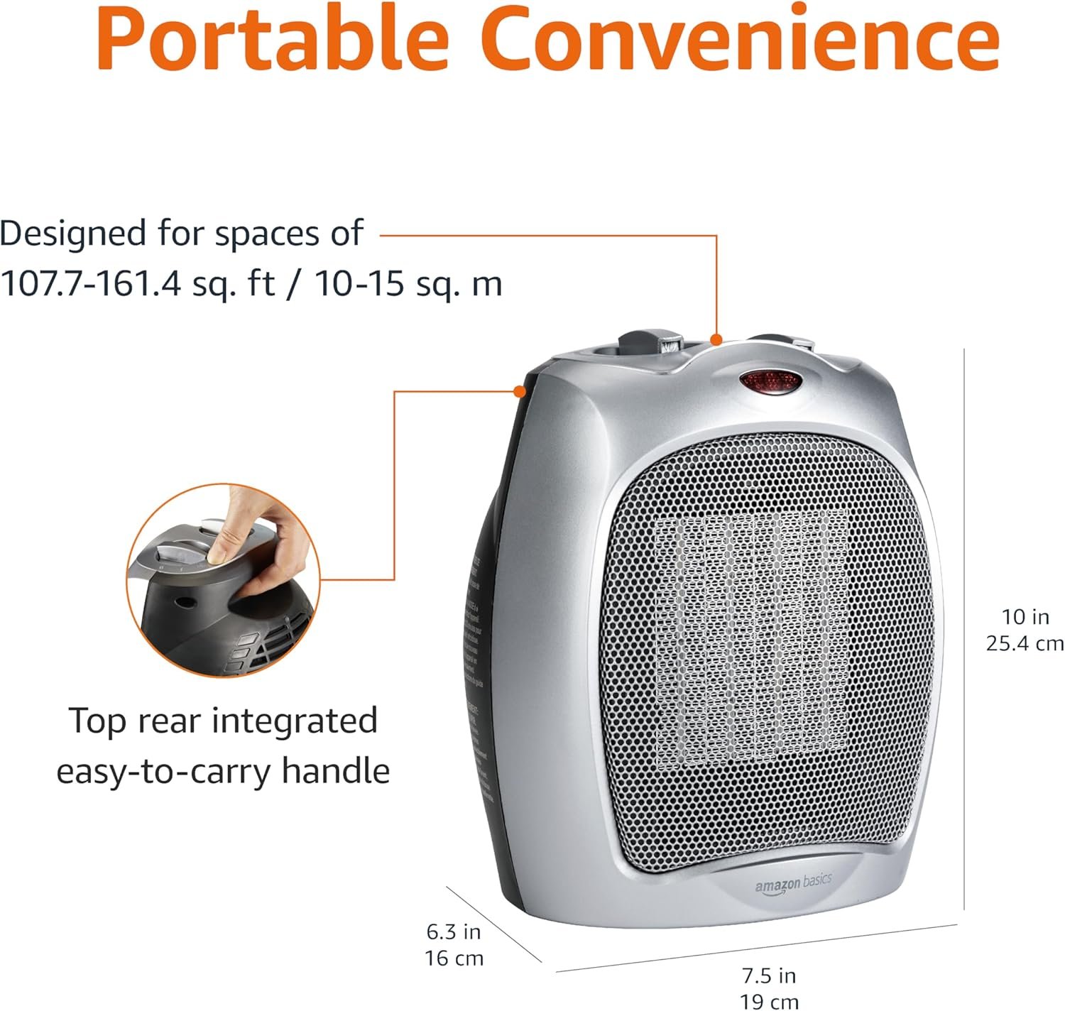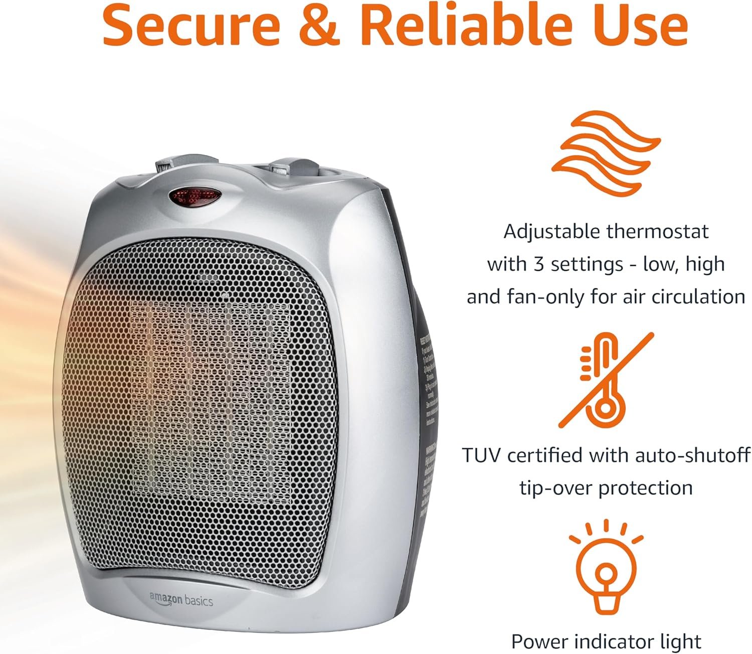The Amazon Basics Ceramic Space Heater is a compact and portable indoor heater designed for rapid and efficient warmth wherever you need it. With customizable heating options (High, Low, and Fan Only), built-in safety features like tip-over and overheat protection, and ultra-quiet ceramic technology, this 1500W heater is perfect for bedrooms, offices, or small living spaces. Weighing just 3 lbs and featuring simple controls, it’s both versatile and easy to use—making it a top choice for reliable, safe heating. Please note, it’s not suitable for use in humid environments.