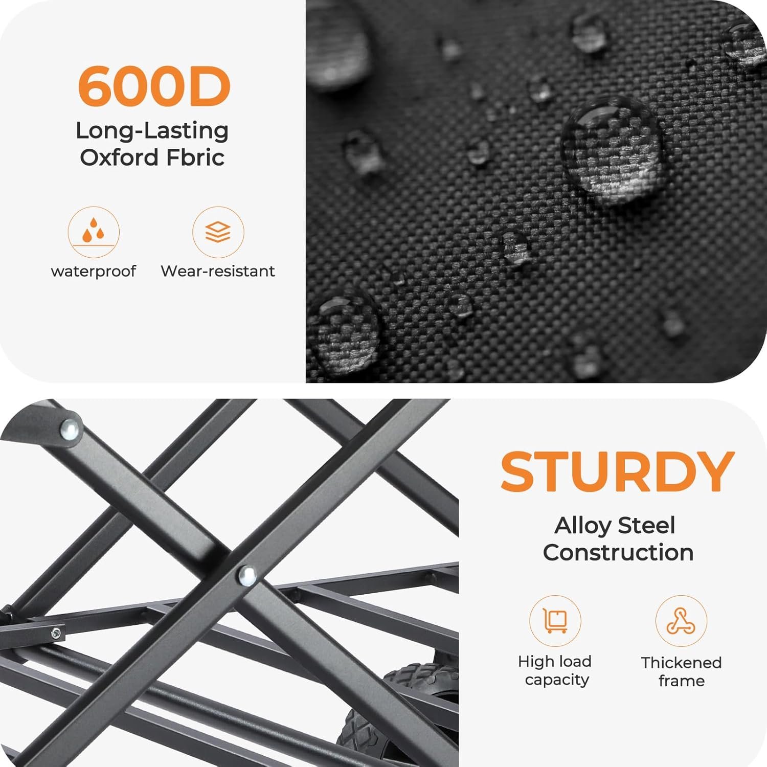 • Steel Frame Strength: A robust alloy steel build means this model won’t buckle under a 220 lbs load—perfect for heavy groceries or beach gear.