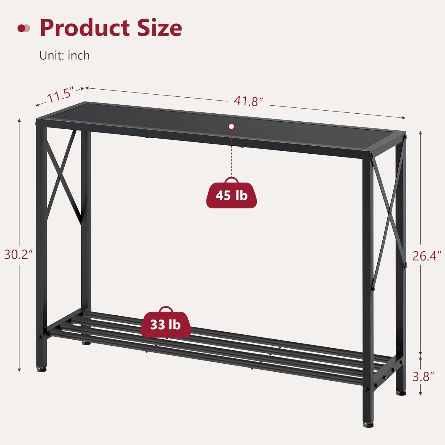 This stylish piece of foyer furniture features industrial accents and can function beautifully behind your couch, along a hallway, or as a minimal entryway table for showcasing decor. The sleek black finish fits with a wide range of modern and classic interiors, while the two-tier structure adds practical storage opportunities without cluttering your room.