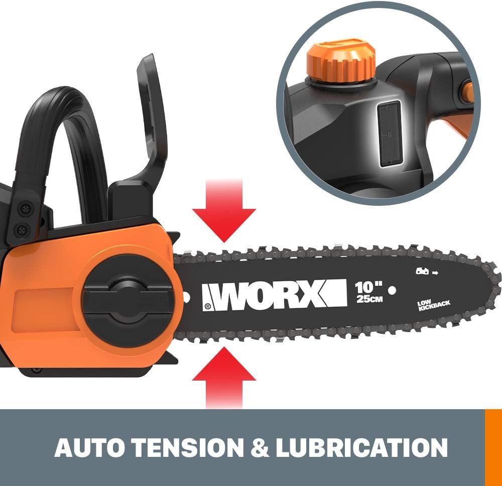 Just keep the oil reservoir filled for the automatic chain lubrication to work properly, and clean the device after use. Refer to WORX’s official resources for more tips.