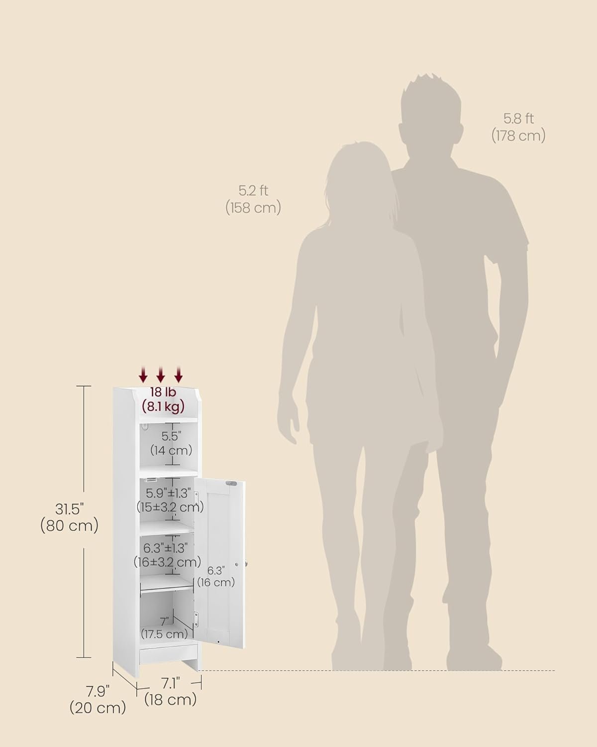 • Optimized for Small Spaces: At just 7.9″ x 7.1″ x 31.5″, this model is designed for narrow storage in bathrooms, living rooms, or hallways, catering to small space furniture needs.