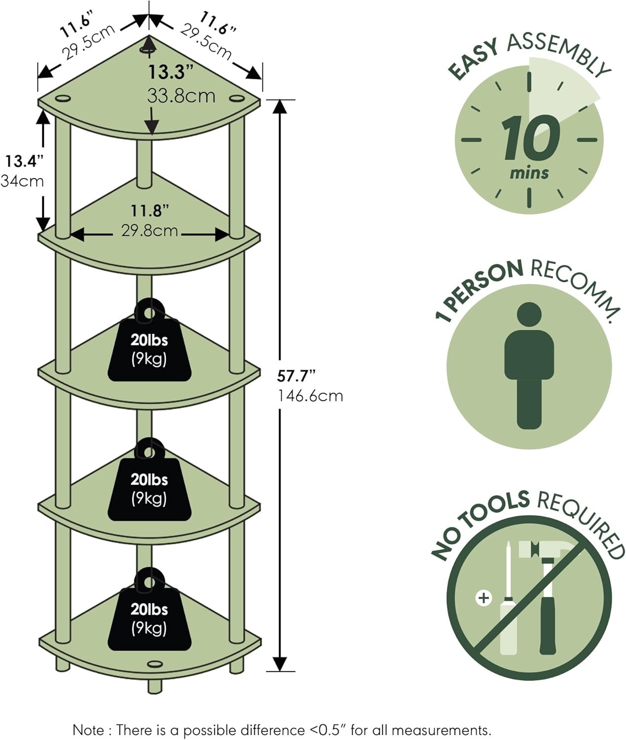 Compared with other popular space-saving shelves like the Homfa 5-Tier Bamboo Corner Rack or the Vasagle Industrial Corner Bookcase, this Furinno shelf wins on price and fast, easy assembly. While high-end metal units from Homfa offer greater load strength and premium wood-finish options, they typically cost triple the amount and can be heavier to move.