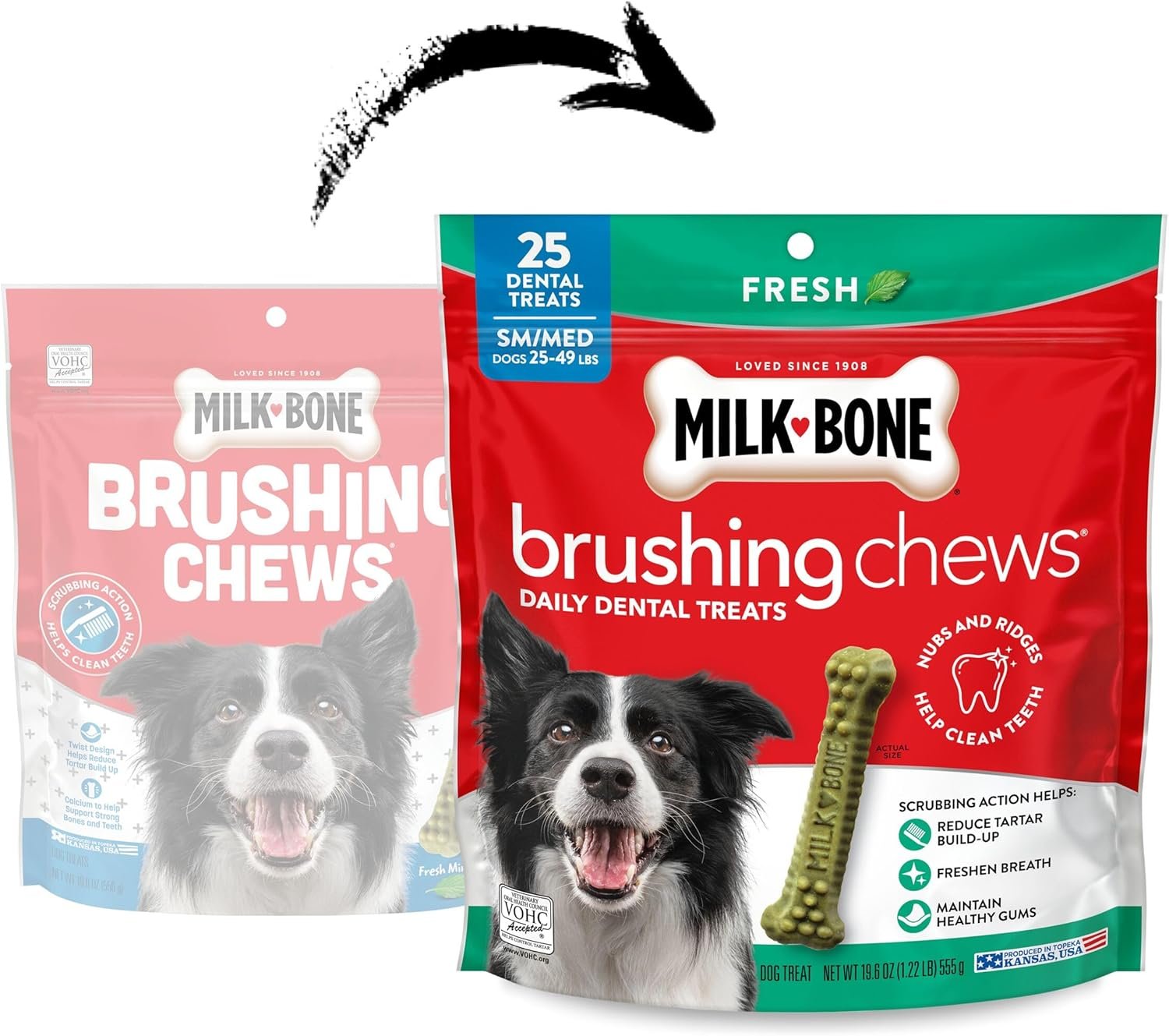The textured nubs and ridges have been reviewed and recognized by the Veterinary Oral Health Council for their ability to reduce tartar buildup and promote healthy gums. - Do the dental chews actually improve fresh breath?