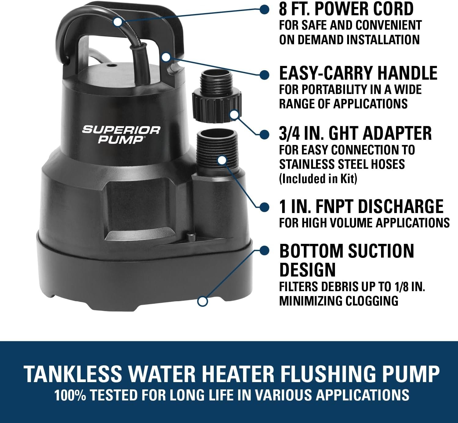 - How often should you clean a water heater with this set? Most experts recommend every 6–12 months, depending on water hardness and usage. This pump kit makes the cleaning process quick and reliable for both tankless water and traditional heater setups.