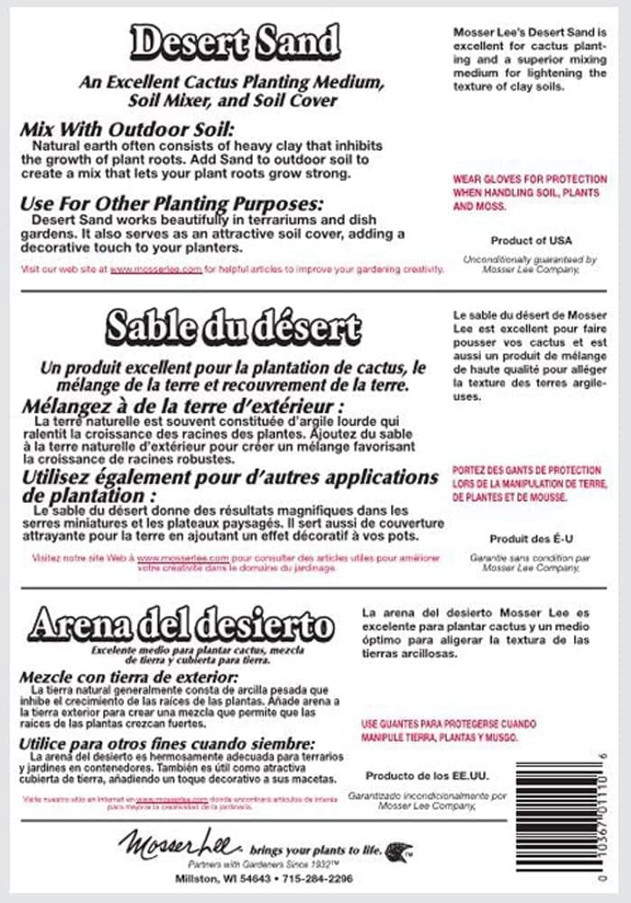 Enhance your indoor plant displays with the Mosser Lee ML1113 Desert Sand 7 lb., now in a new larger size. Perfect for covering soil, this decorative sand from the trusted Mosser Lee Store not only improves the look of house plants but also helps retain moisture and loosen compacted soil. Ideal for clear vases, dish gardens, and terrariums, it’s a versatile choice for anyone looking to elevate their plant care. Make your greenery stand out while promoting healthy growth with this must-have accessory.