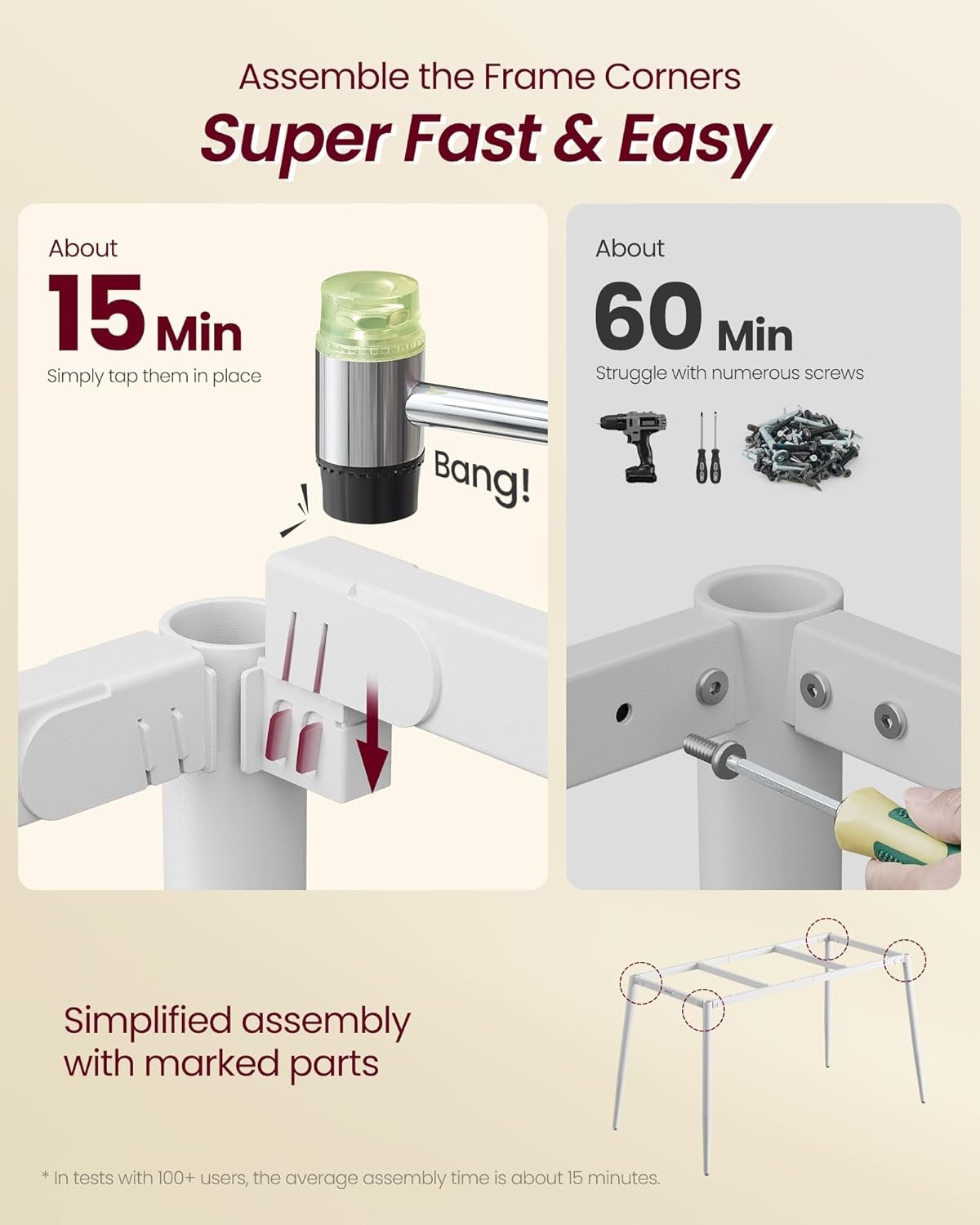 • Quick Assembly: Thanks to intuitive instructions and a streamlined frame, setup takes only 15 minutes—no power tools needed!