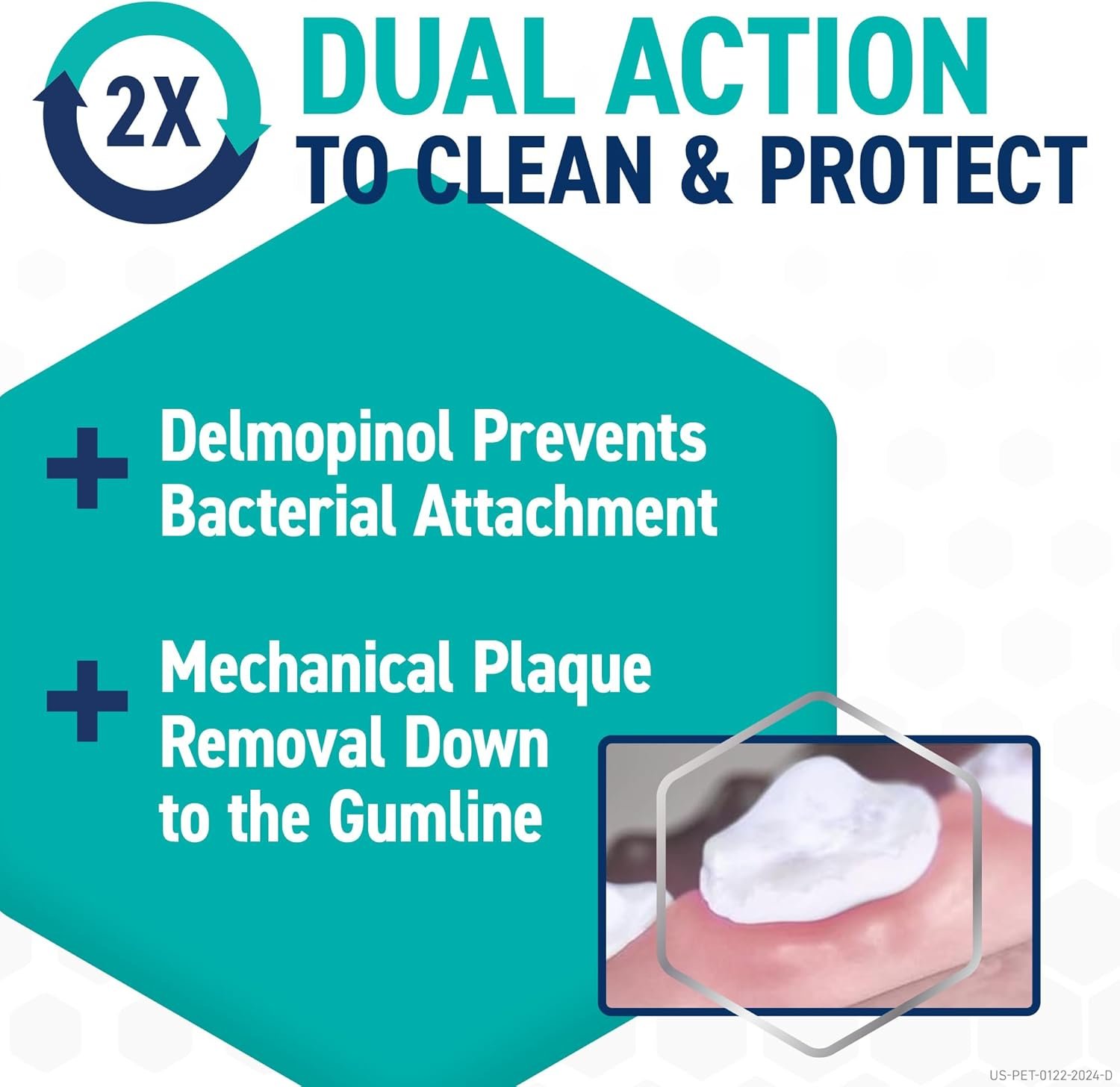 - Mechanical & Chemical Action: Each daily dental chew uses a dense, flexible design to loosen tartar while the delmopinol ingredient works to reduce bacterial adhesion, enabling better tartar control compared to standard dog treats.