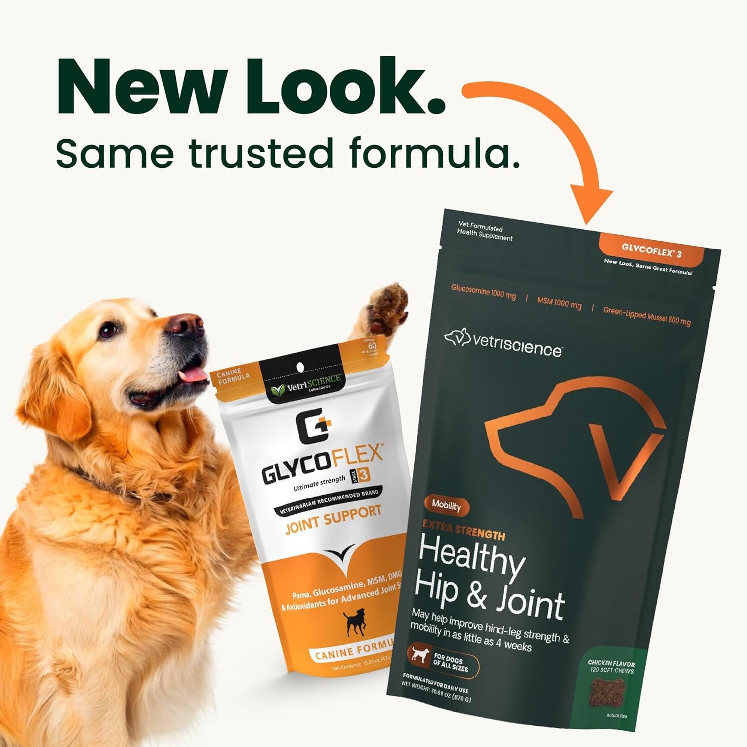 The VetriScience GlycoFlex 3 Extra Strength Hip & Joint Supplement for Dogs provides advanced joint support with a clinically proven formula developed by veterinarians. Featuring a powerful blend of glucosamine, MSM, and green-lipped mussel, these tasty chicken-flavored chews help boost mobility, flexibility, and joint health in senior, active, or large breed dogs. Manufactured in an FDA-registered facility and carrying the NASC Quality Seal, this supplement is a trusted choice for pet parents wanting science-backed results without artificial dyes or colors. Make it easy to support your dog's comfort and movement with these highly palatable, easy-to-give chews from VetriScience.