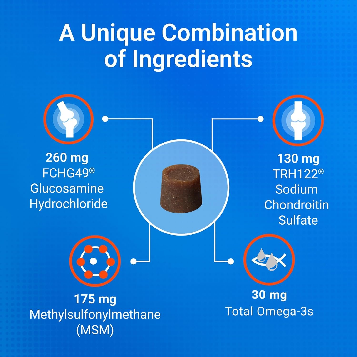 - Maximum Strength Formula: Each soft chew delivers glucosamine hydrochloride, sodium chondroitin sulfate, and MSM—key compounds in joint supplements for joint health for dogs and mobility support.