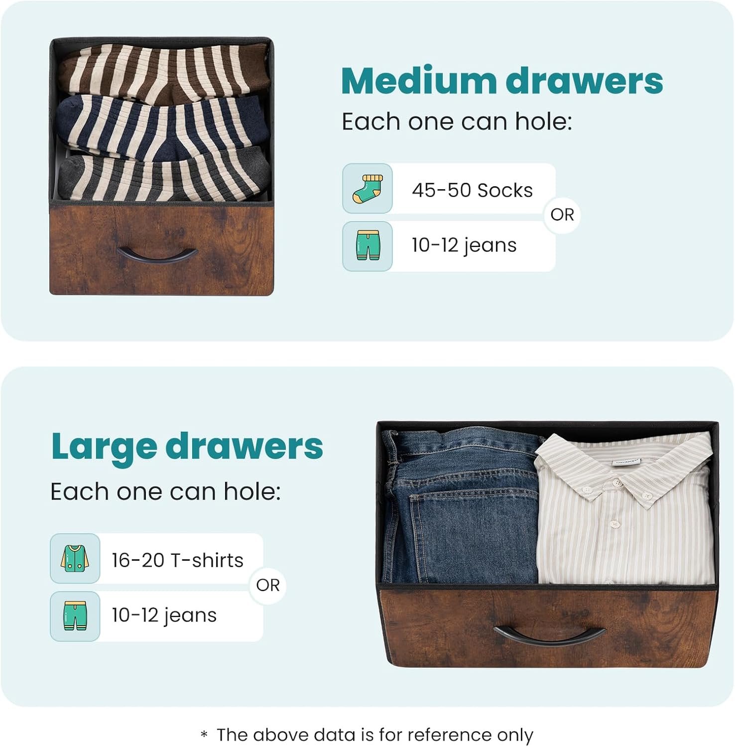 • Seven Spacious Storage Drawers: Keeps clutter hidden and accessible. The fabric dresser design makes it lightweight yet durable, easy to move during cleaning or redesigns.