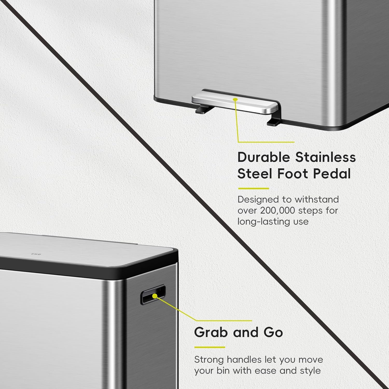Yes, both compartments feature removable bins with sturdy handles. Pull them out for quick cleaning or liner replacement—great for keeping your step trash can hygienic. - What is the build quality like?