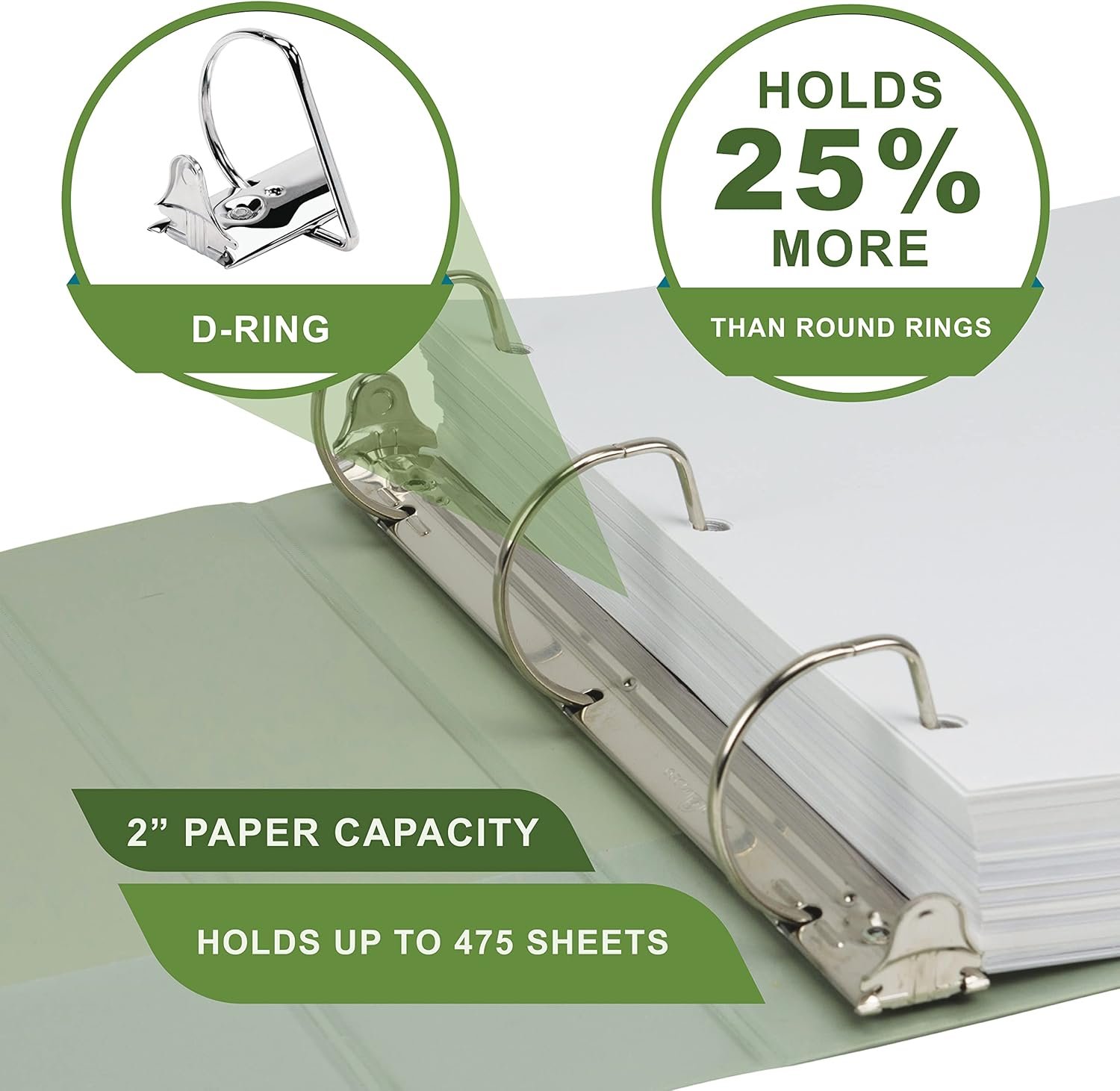 Proudly made in the USA by Samsill, this model utilizes plant-based polypropylene from Brazilian sugarcane combined with 100% recycled fiber boards. The contemporary sage green finish and 2-inch durable D-ring mechanism make it ideal for those seeking a stylish, sustainable binder solution for organizing documents, storing schoolwork, or managing projects.