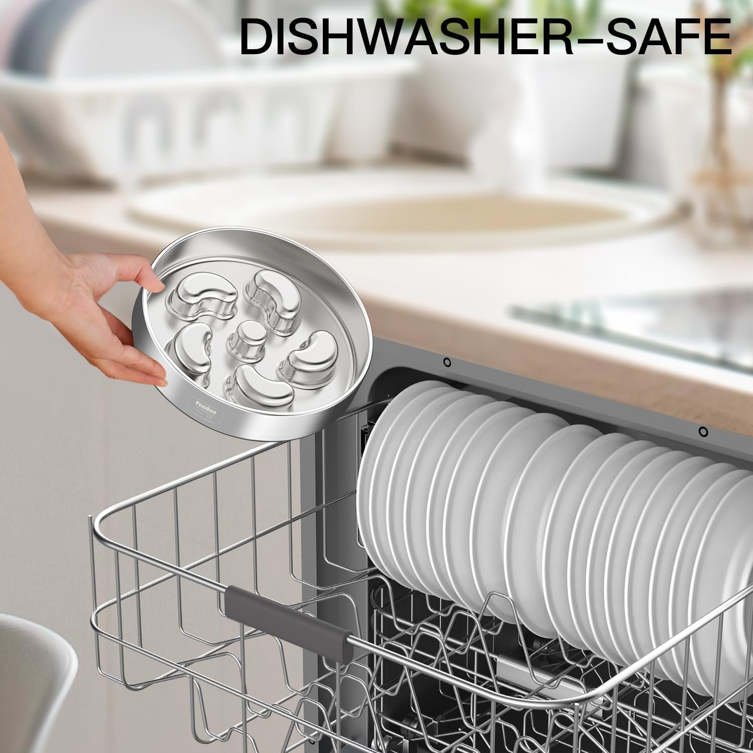 Feedoo Double-Layer Food-Grade Stainless Steel Slow Feeder Dog Bowl – Non-Slip Pet Feeding Dish