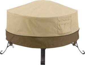 Yes, the DUCKCOVERS Elegant 34 Inch model specifically uses water-repelling material and seam construction to keep your round firepit fully dry in rain, making it a reliable waterproof cover. - Can I use this outdoors through winter?