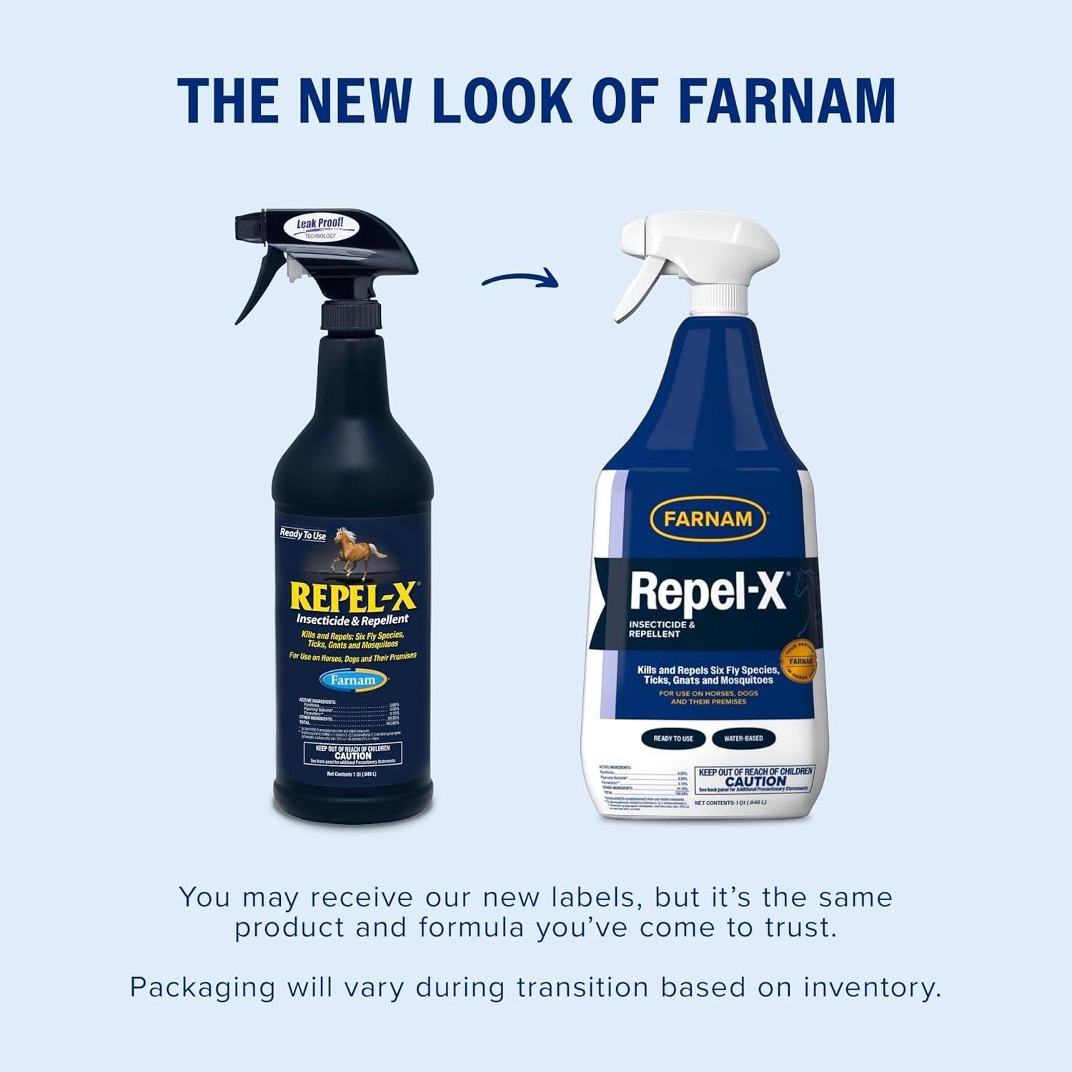 Protect your horses, dogs, and their surroundings with the trusted Farnam Repel-X Insecticide & Repellent, a ready-to-use, water-based fly spray that kills and repels six fly species, mosquitoes, ticks, fleas, and more. This original formula, a favorite since 1957, keeps barns and animal quarters pest-free without greasy residue. Convenient and cost-effective, it's the all-in-one solution for effective insect control from the renowned Farnam Store.