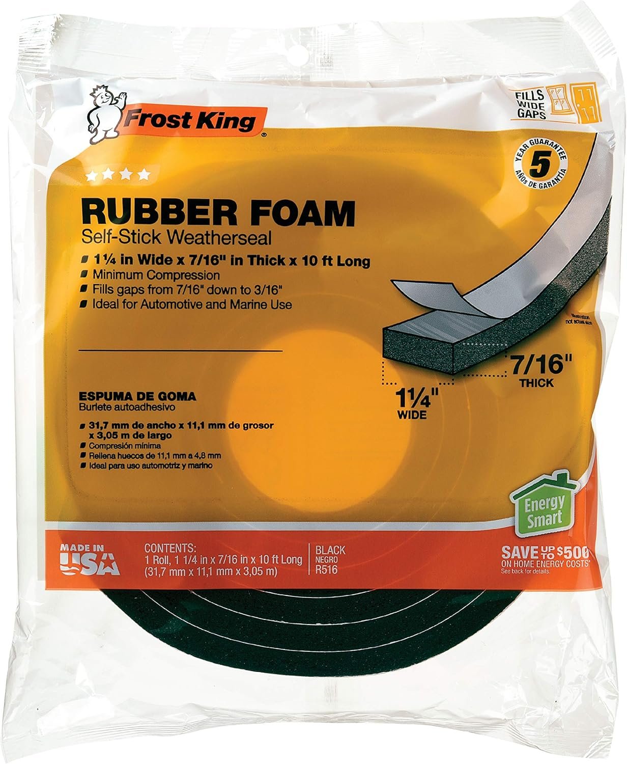 • How does it compare to Frost King R516H alternatives? The sponge rubber tape in this product is thicker and more durable than most generic foam strips, offering better shock absorption and weather resistance.