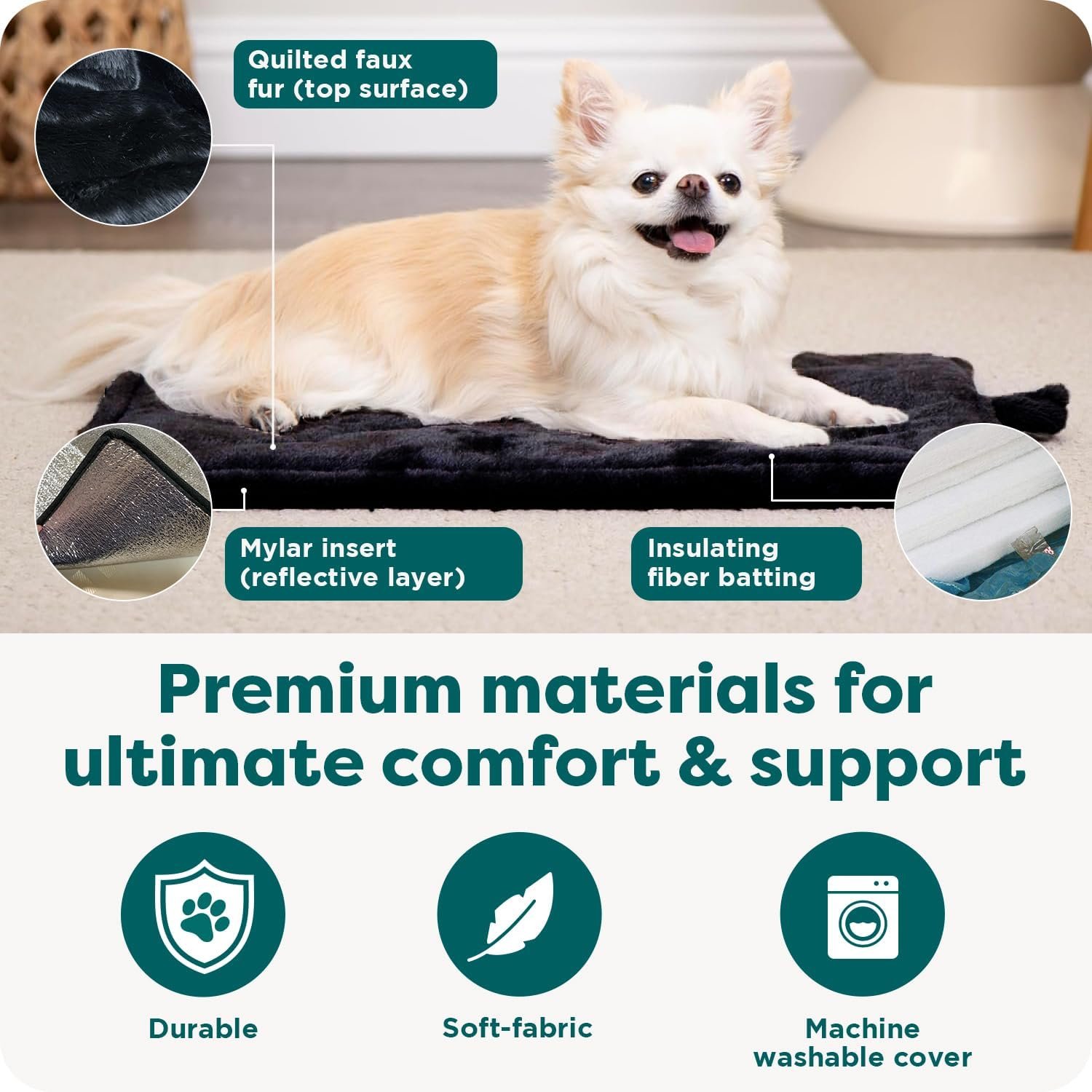 The Furhaven ThermaNAP Self-Warming Pet Bed Mat uses innovative self-warming technology to reflect your pet’s own body heat, creating a naturally cozy resting surface without electricity or cords. Featuring a quilted faux fur cover and lightweight design, this bed is fully machine washable and perfect for indoor cats and small dogs seeking warmth and comfort. Ideal for use in crates, carriers, or favorite lounging spots — simple, safe, and easy to maintain.