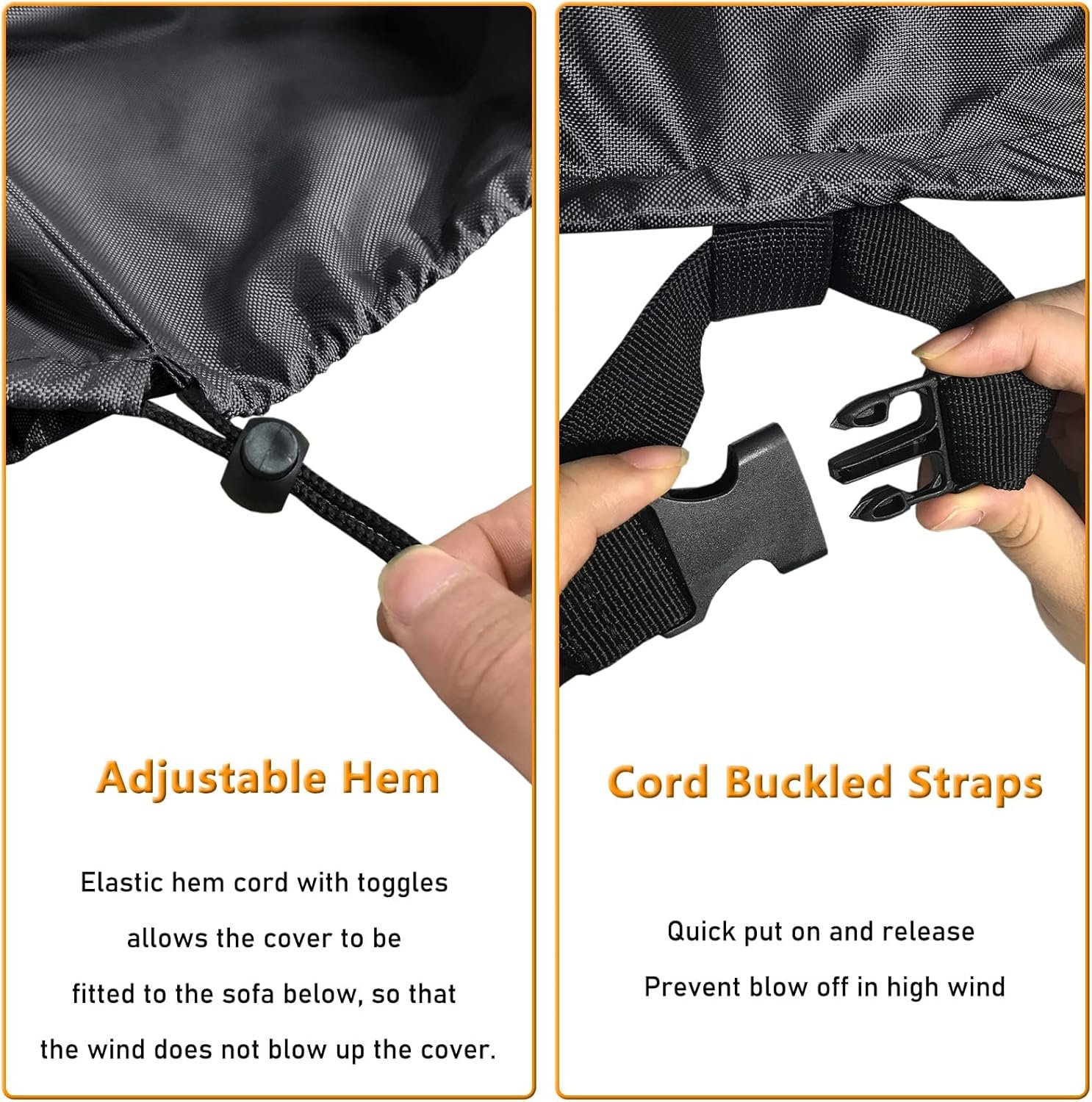 - Windproof Straps & Custom Fit: Each piece comes with buckled leg straps and an adjustable drawstring, ensuring the weatherproof cover stays secure even on blustery days.