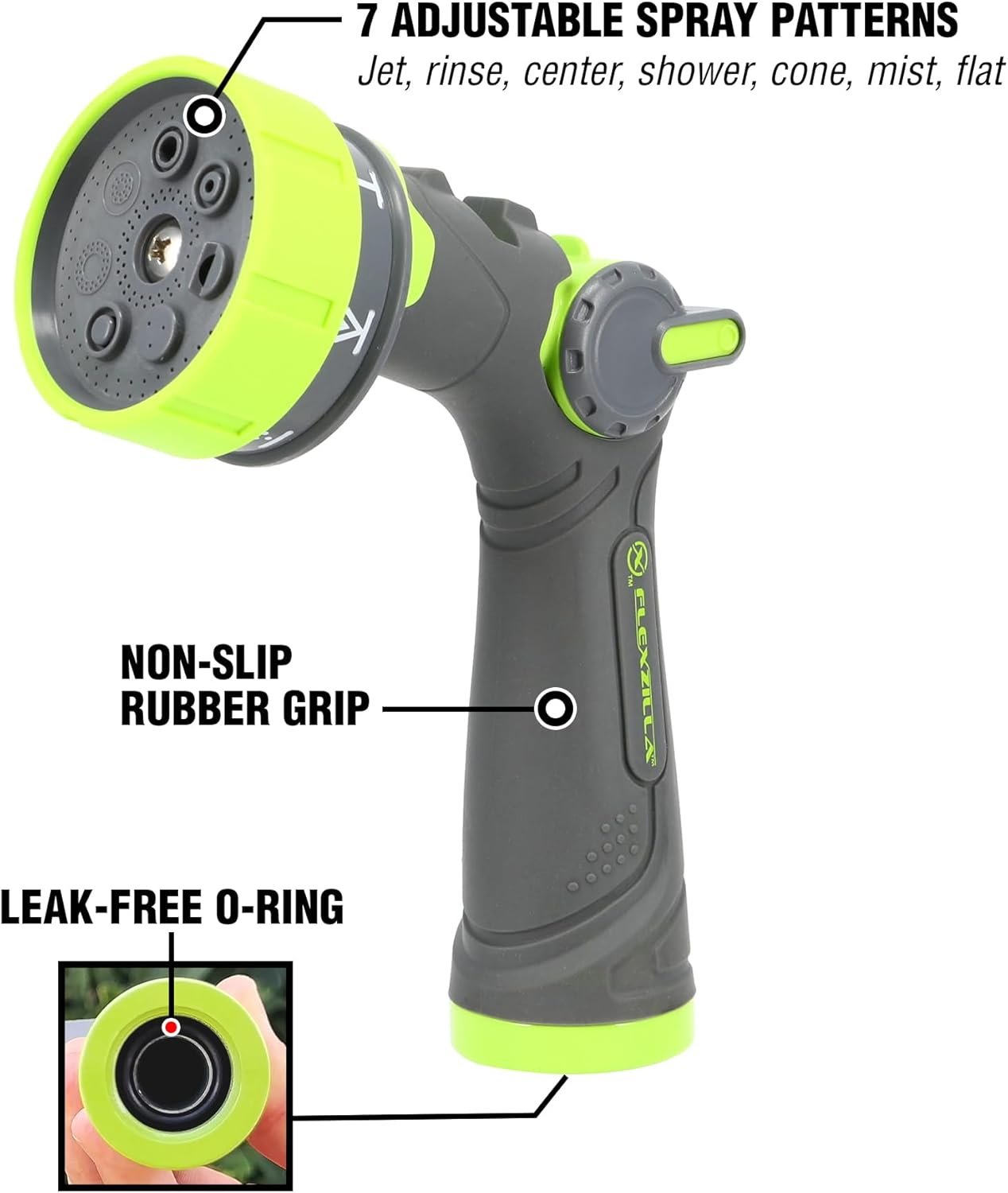 Upgrade your watering routine with the Flexzilla 7-Pattern Adjustable Flow Garden Hose Nozzle Sprayer from the Flexzilla Store. Featuring an easy-to-use thumb control and heavy-duty metal construction, this nozzle offers durability and effortless adjustment from a powerful jet to a gentle mist. The seven versatile spray patterns and comfortable, non-slip grip make it perfect for any gardening task, while the leak-free O-ring seal ensures secure, watertight connections. With its lightweight design and user-friendly features, this nozzle is a must-have for any garden enthusiast.