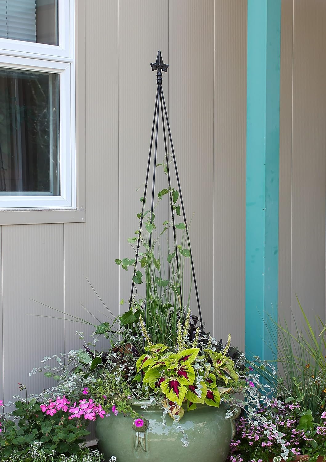 • Black powder coated: Offers reliable weather resistance and keeps this piece looking sleek as an outdoor decor asset for any container or garden bed.