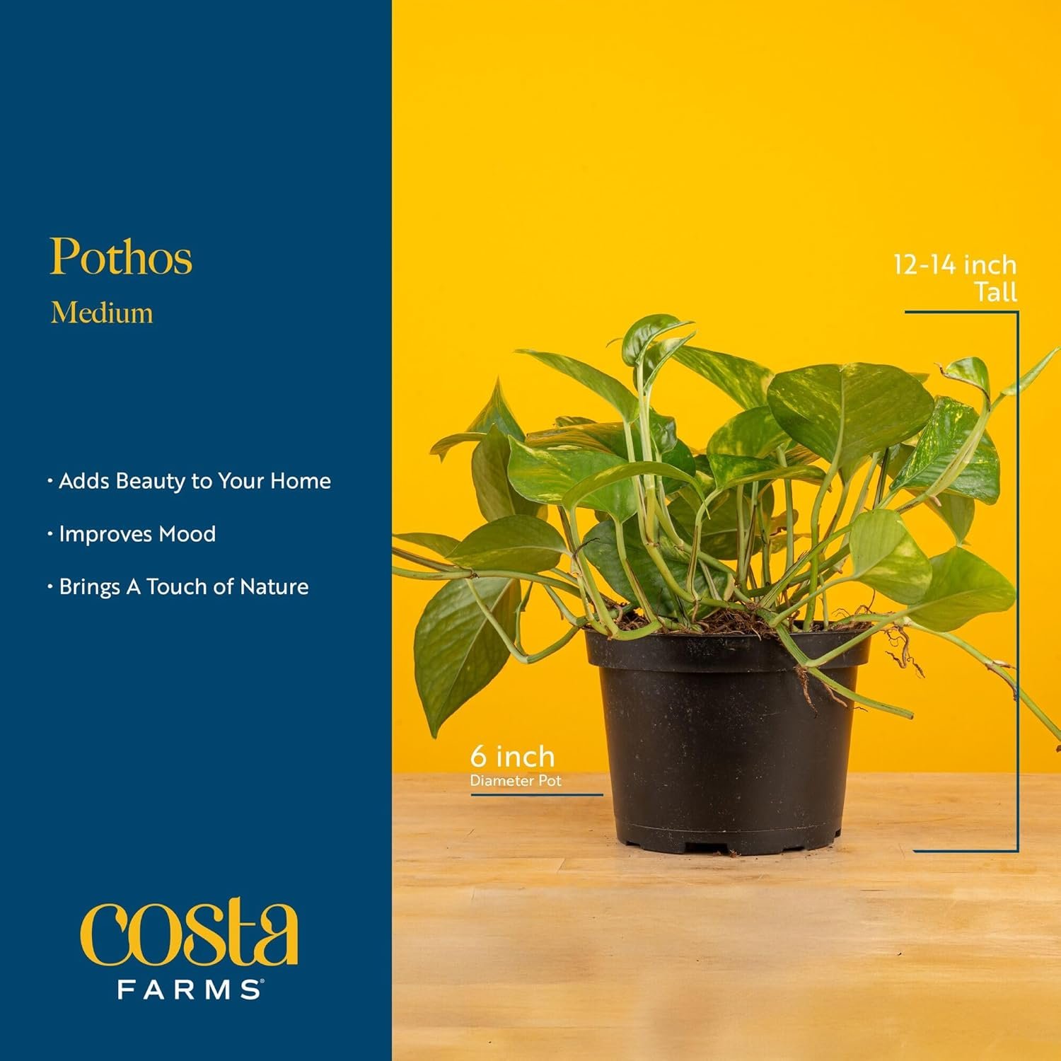 Elevate your home or office decor with the Costa Farms Golden Pothos Live Plant, an easy-care indoor house plant that thrives in any space. This resilient, heart-shaped leafy plant comes in a 6-inch grower's pot and stands about 10 inches tall, making it a perfect choice for new plant parents. Fresh from the farm, it's a stylish way to boost mood, enhance air quality, and makes a thoughtful housewarming or desk gift. Add a touch of lush greenery from the trusted Costa Farms brand and enjoy low-maintenance beauty year-round.