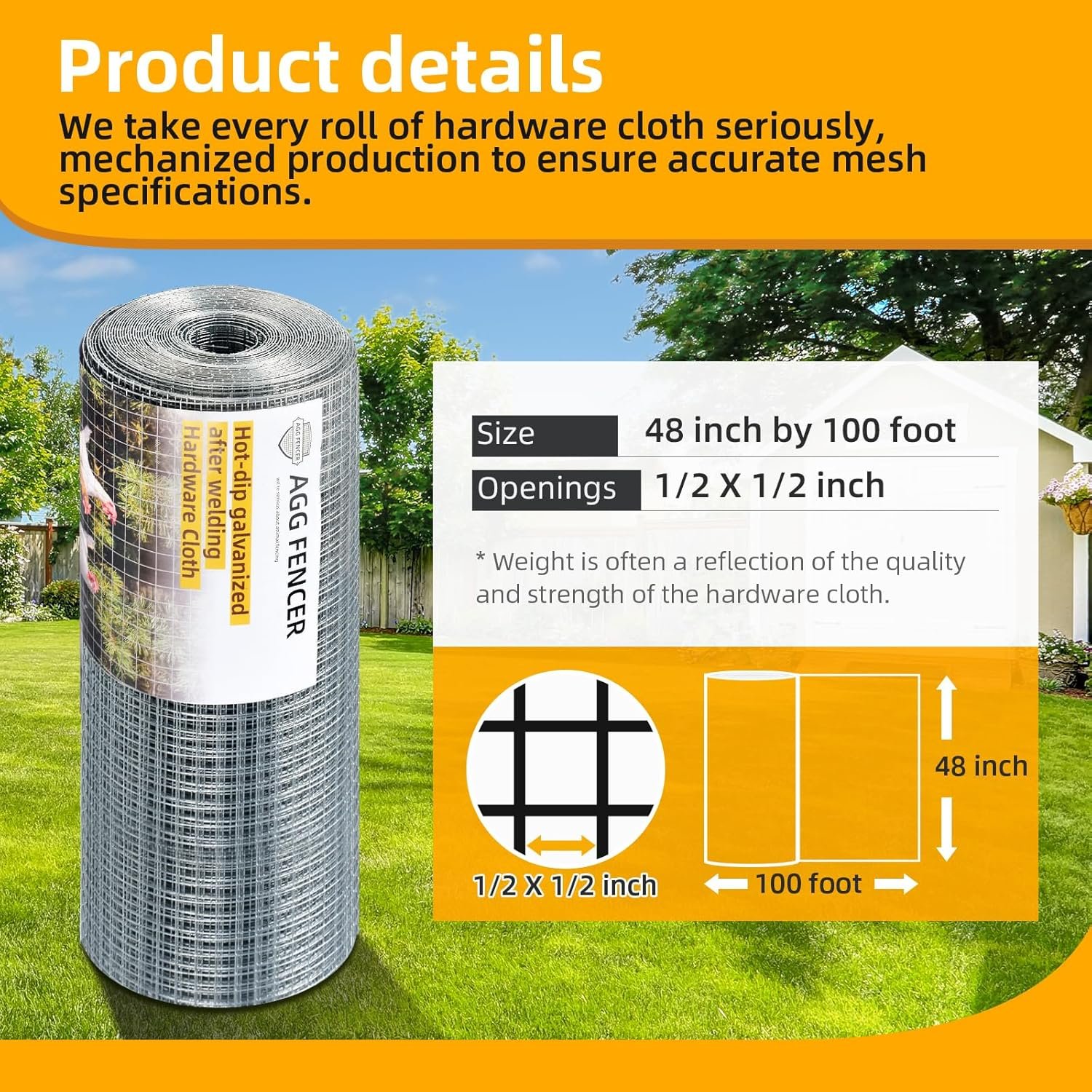 Upgrade your fencing needs with the AggFencer Hardware Cloth 1/2 inch 48 x 100ft Chicken Wire Fencing, crafted from premium low carbon steel wire for outstanding strength and ductility. Featuring professional hot-dipped galvanizing after welding, this mesh is built for long-lasting, rustproof, and corrosion-resistant durability—even in harsh environments. Versatile and reliable, it’s perfect for protecting poultry, pets, gardens, and more, making it an excellent choice for any DIY or garden project. Choose AggFencer for top-notch quality and peace of mind in every roll.