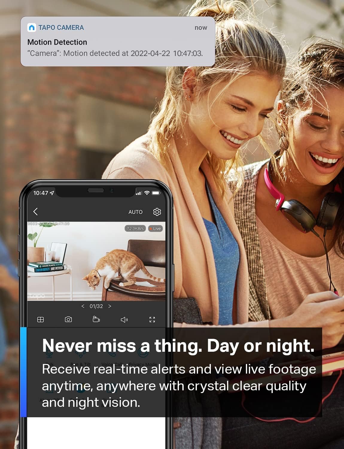 • Motion Detection and Alerts: Receive smart notifications powered by reliable motion detection—whether you’re using it as a pet camera or part of your home security setup.