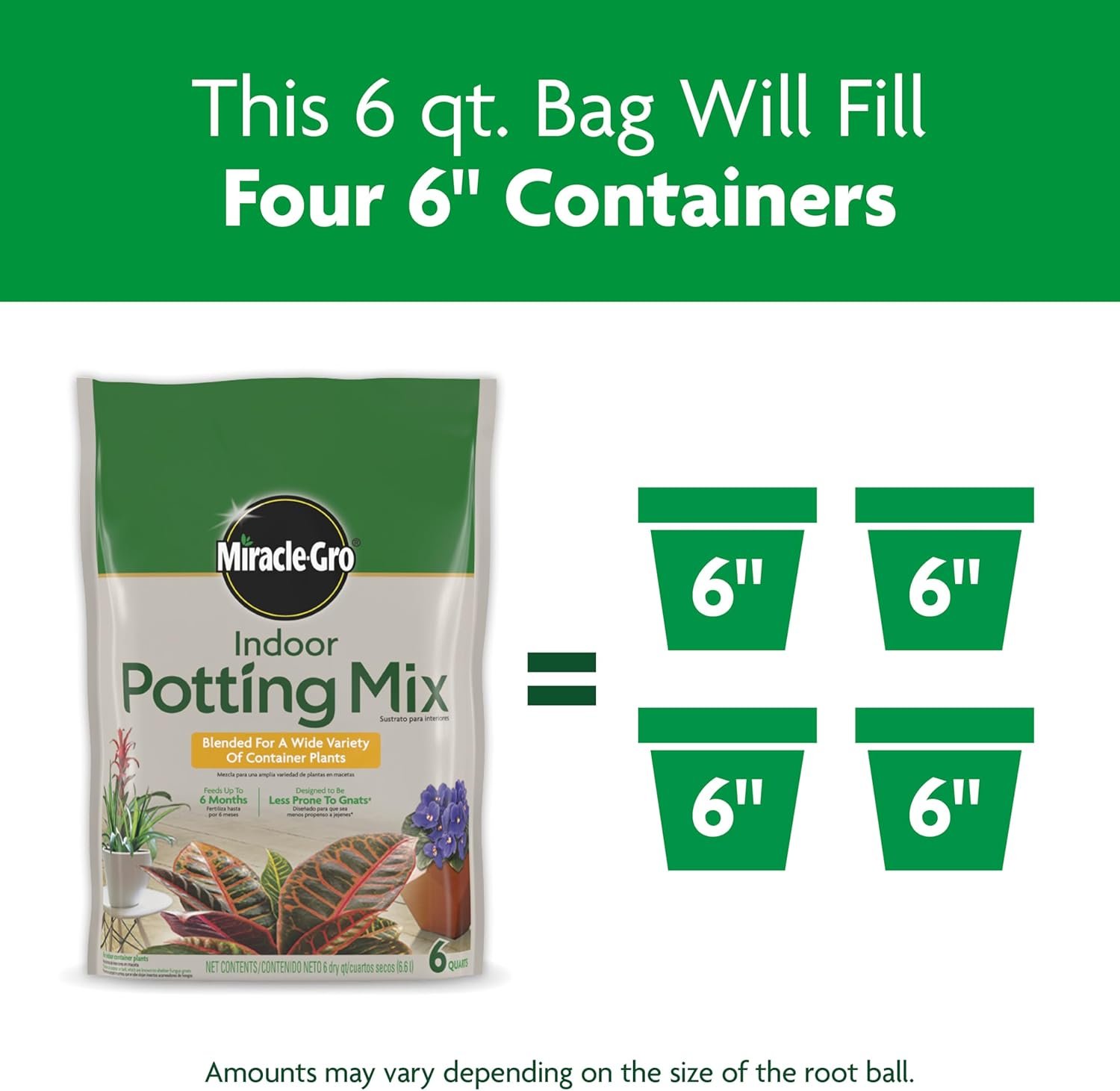 Miracle-Gro Indoor Potting Mix is specially blended for a wide variety of indoor houseplants, offering up to 6 months of nutrient-rich feeding. Unlike other mixes, it contains no compost or bark, making it less prone to gnats, and features coconut coir for optimal moisture control. Each bundle includes three 6 qt. bags, perfect for multiple potted plants. Trust Miracle-Gro to help your indoor plants thrive with minimal fuss and maximum results.