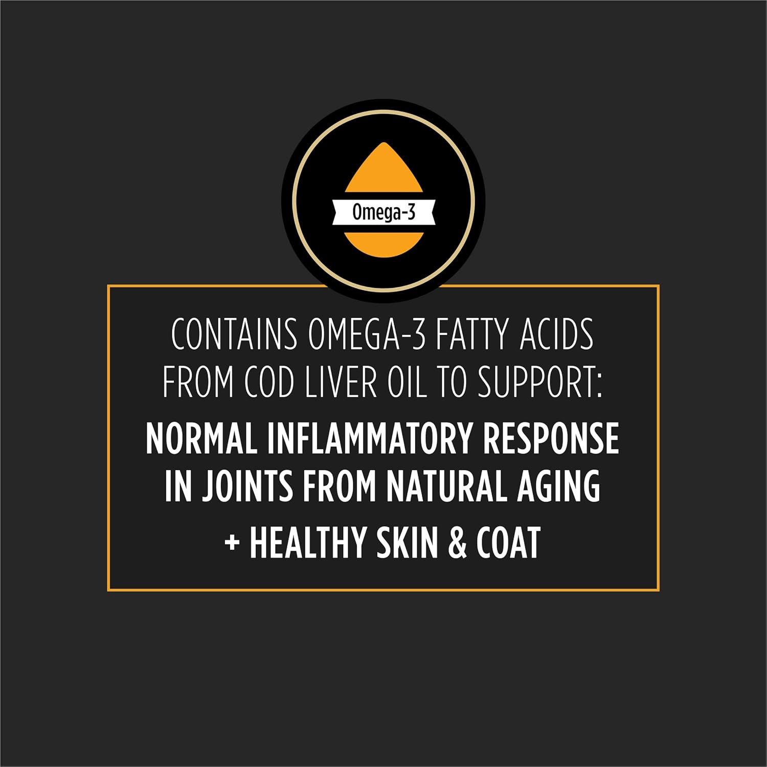 - Omega-3 fatty acids from cod liver oil: Promotes a normal inflammatory response in the joints and nourishes skin health as part of a veterinary dog supplement routine.