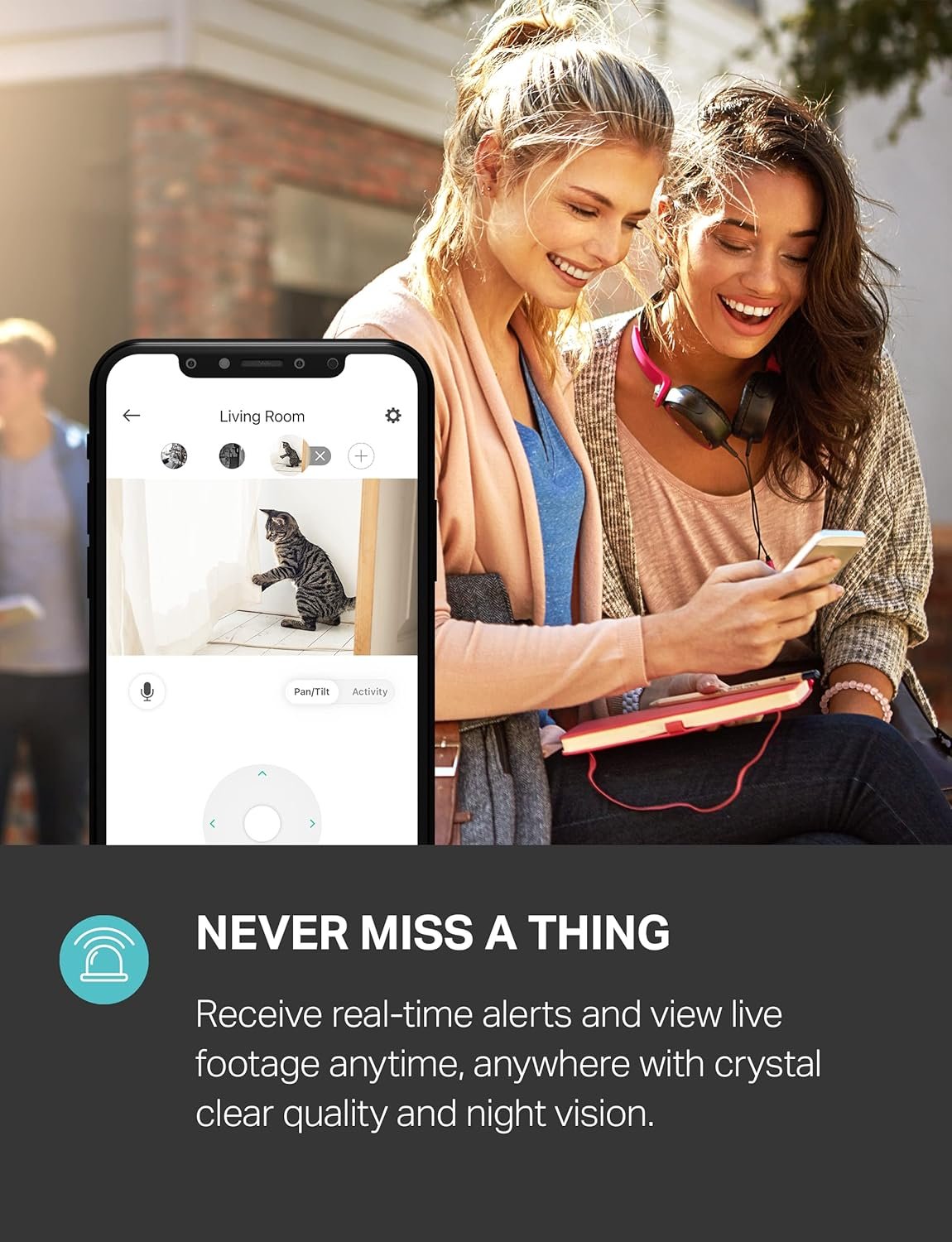 The Kasa Smart Pan & Tilt Security Camera (EC71) delivers smooth 2K HD video, automatic motion tracking, and remote pan/tilt control for complete room coverage. Designed for indoor monitoring, it features two-way audio, advanced motion detection alerts, and night vision to keep you connected 24/7. Compatible with Alexa and Google Assistant, and easy to install on Wi-Fi, this camera lets you watch over pets, children, or your home with clarity and convenience.