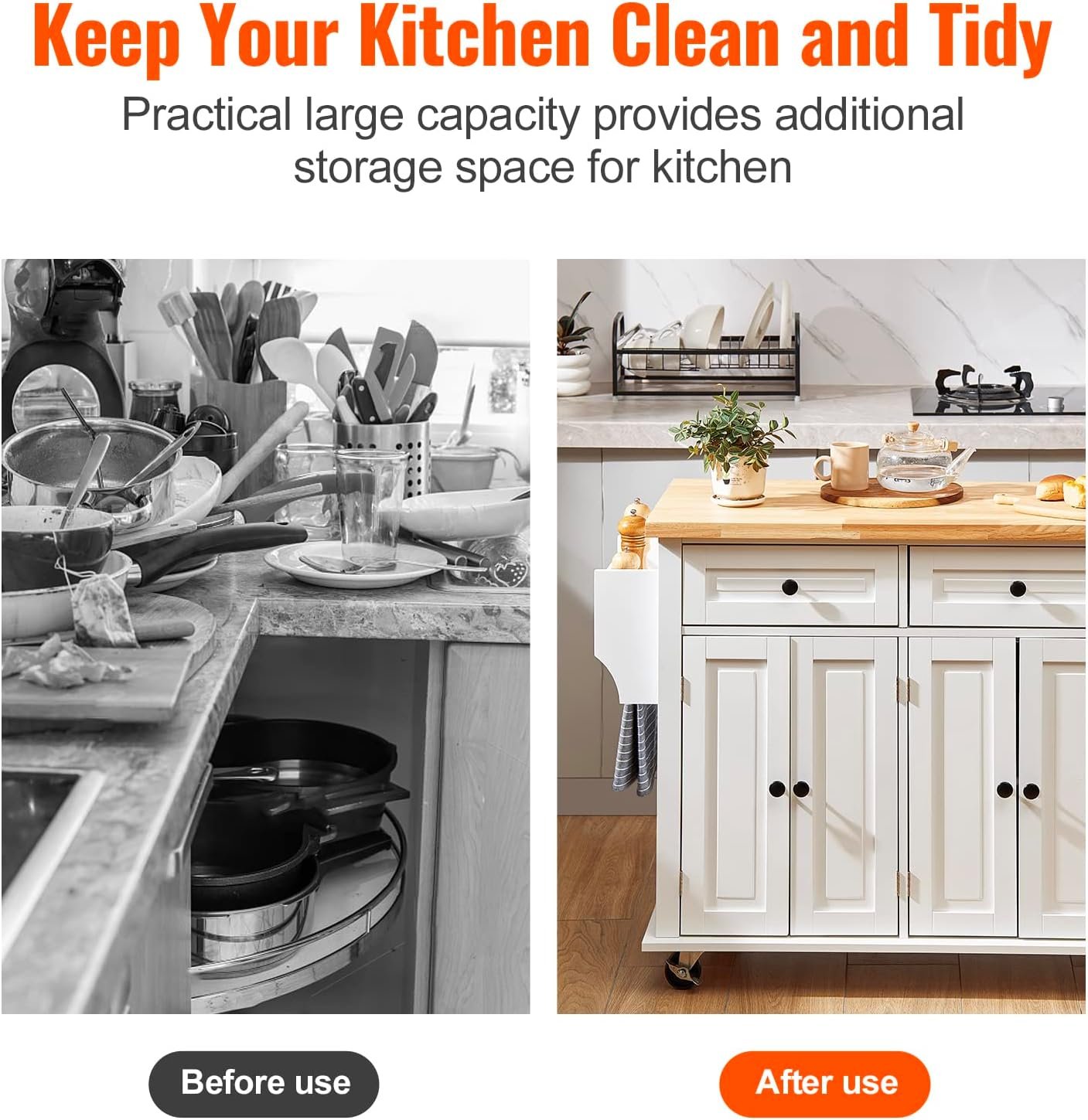 In summary, the kitchen island from VEVOR is a top choice for maximizing kitchen storage, style, and mobility in 2025. Get yours to transform your cooking space today!