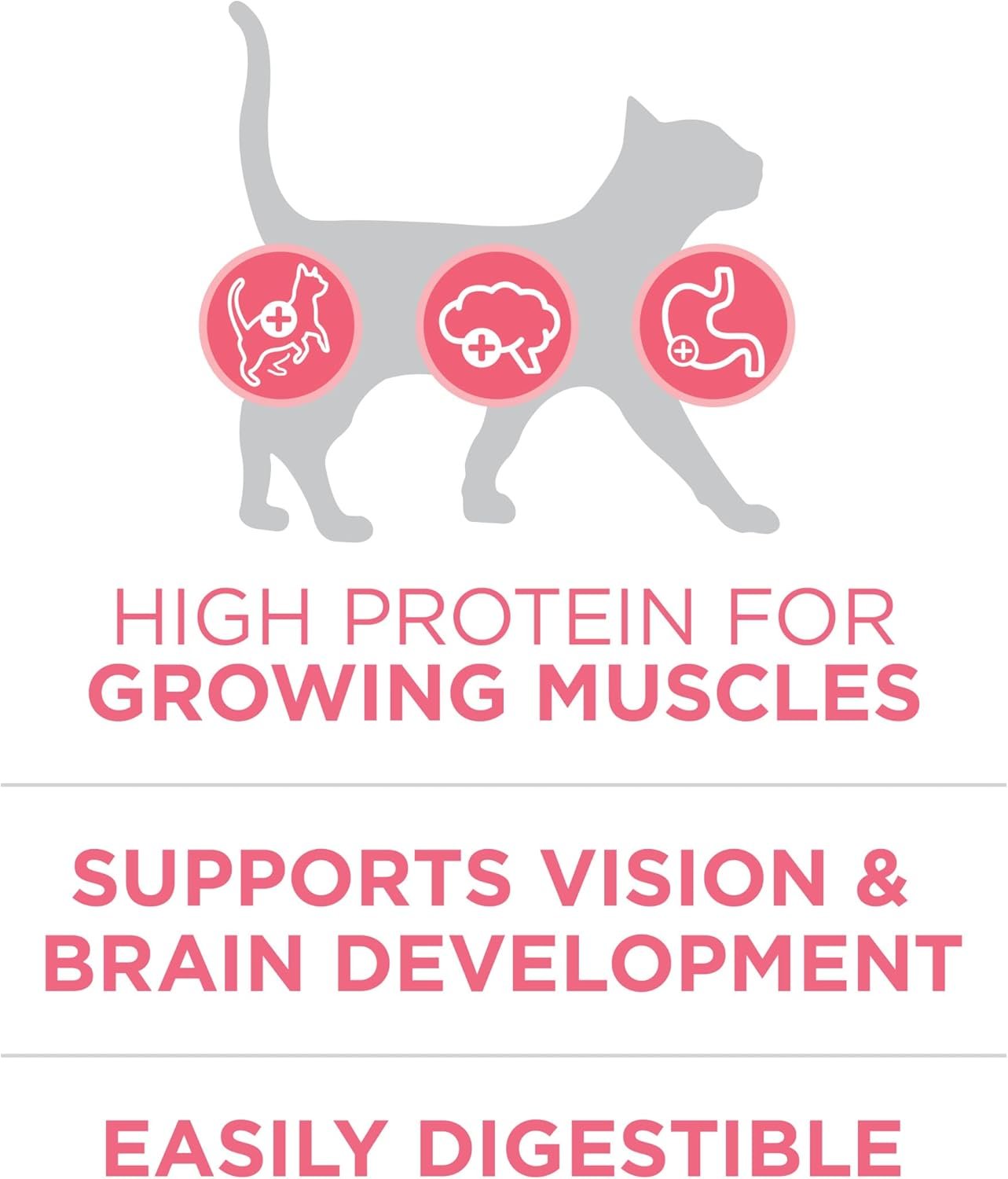 The Purina ONE High Protein, Natural Dry Kitten Food offers your kitten complete nutrition with real chicken as the #1 ingredient for strong muscle growth. Enriched with DHA for brain and vision development and four antioxidant sources for immune support, this veterinarian-recommended formula ensures your kitten thrives. Crafted in U.S. facilities with added vitamins, minerals, and no artificial flavors or preservatives, every crunchy bite also promotes healthy teeth and gums. Give your kitten the delicious, balanced start she deserves with Purina ONE's trusted formula.