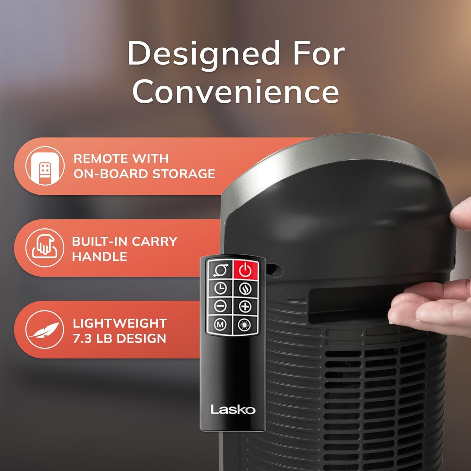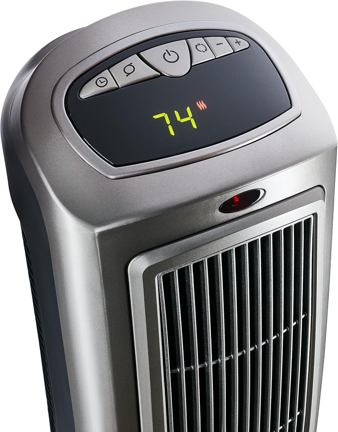 The Lasko 755320 1500W Digital Ceramic Tower Heater delivers efficient warmth with a powerful ceramic heating element, wide oscillation, and an adjustable digital thermostat—ideal for bedrooms and living rooms. This portable space heater features a remote control, 8-hour programmable timer, and digital temperature display for easy comfort management. Built-in safety protections and a slim, space-saving design make it a reliable choice for daily indoor heating during cooler seasons.