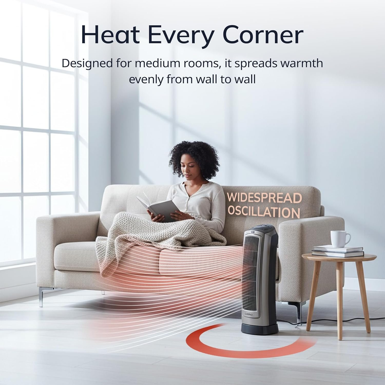 The Lasko 755320 1500W Digital Ceramic Tower Heater combines strong ceramic heating with wide oscillation and an easy-to-read digital thermostat for efficient, customized warmth in bedrooms or living spaces. Featuring a remote control, 8-hour timer, and digital temperature display, this portable heater makes comfort simple and convenient. Built-in safety features like overheat protection enhance peace of mind. Quiet and versatile, it’s a dependable solution for everyday indoor heating—click to explore its full feature set.