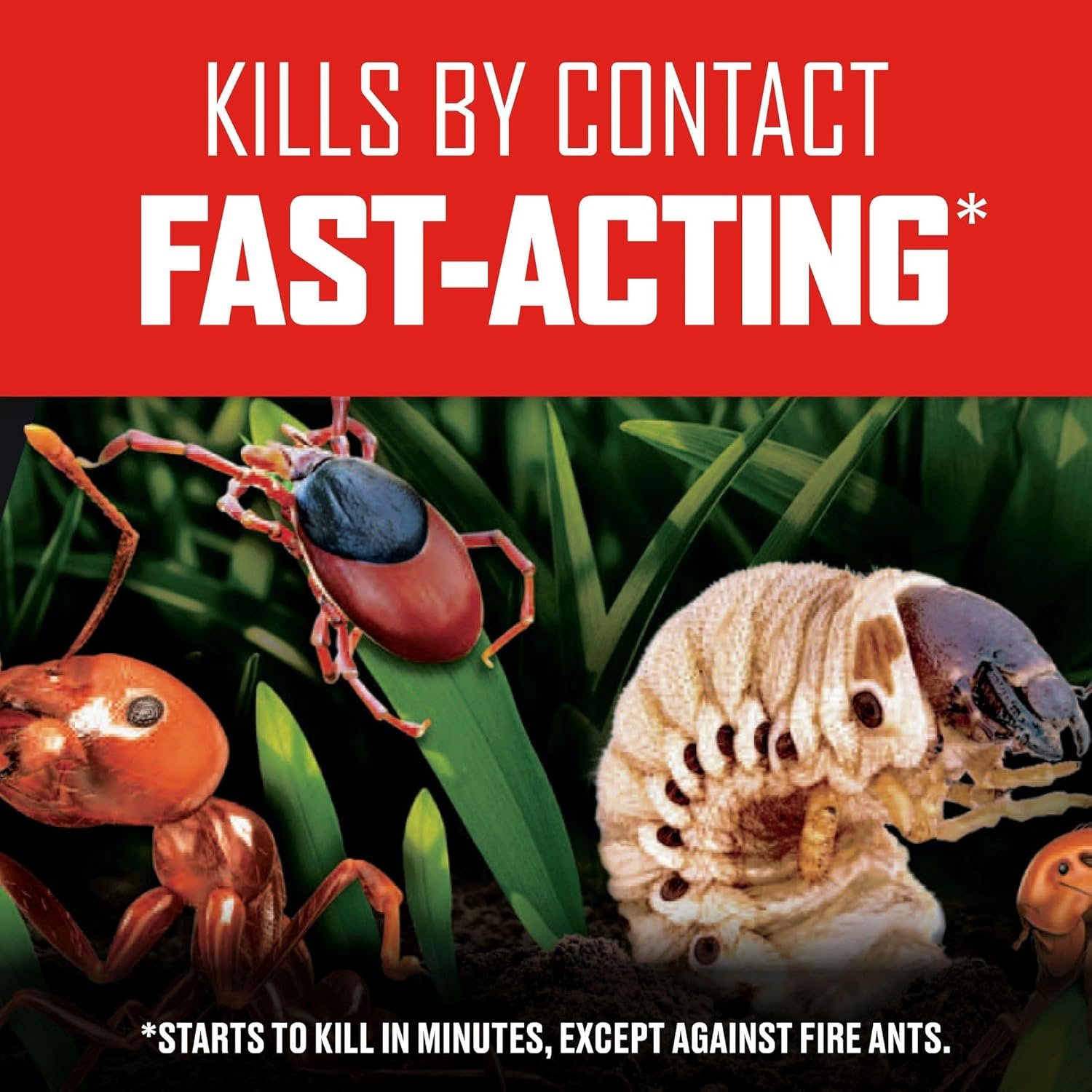 This product is formulated to kill ants, spiders, ticks, fleas, armyworms, grubs, and other listed insects, making it a versatile choice for yard pest protection.