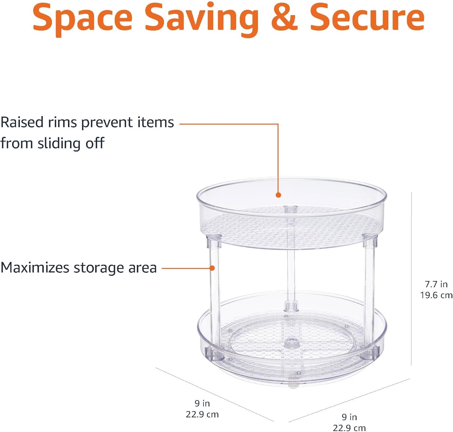• DURABLE CONSTRUCTION: Built from clear turntable BPA-free plastic, this model stays sturdy and lets you always see what you have. The non-slip tray keeps items stable during use.