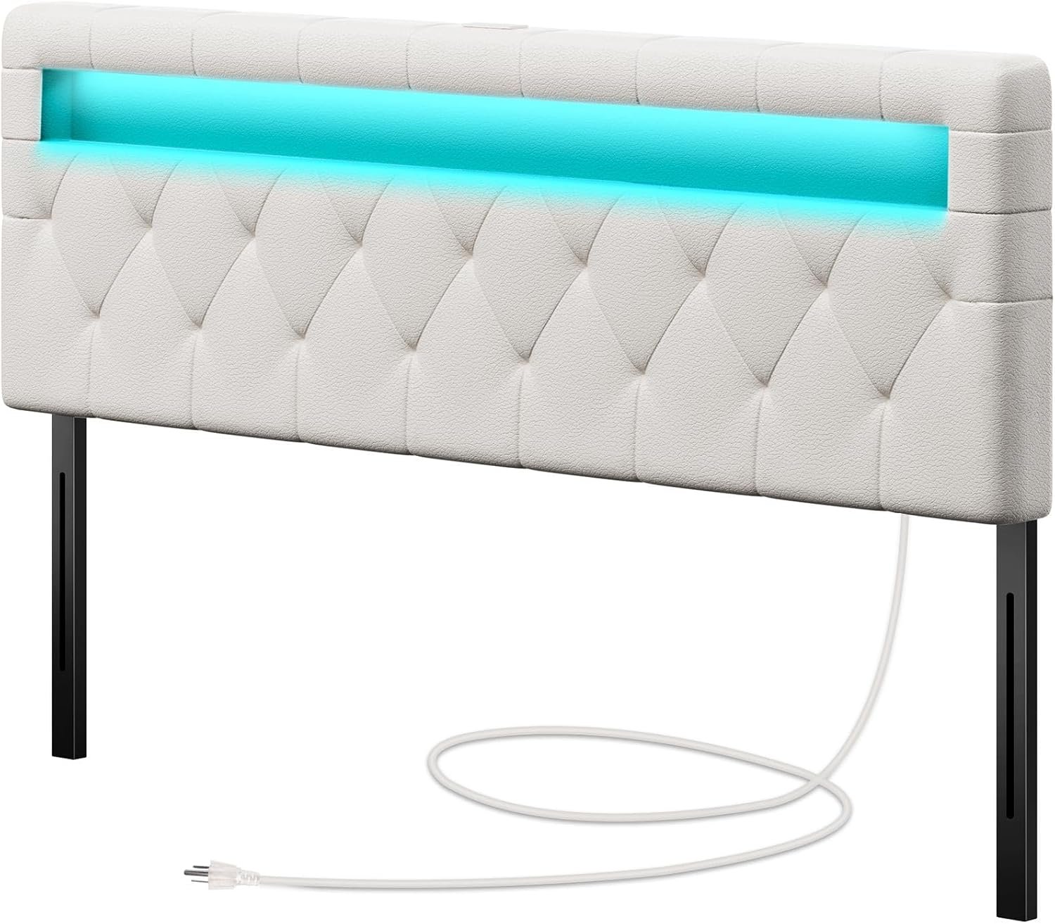 Elevate your bedroom with the GREENSTELL Headboard for Queen Size Beds, a smart and stylish upgrade featuring over 60,000 LED color options and music-sync lighting for ultimate ambiance. Enjoy built-in USB and Type-C charging ports, plush high-density foam padding, and easy-clean white leather upholstery. The adjustable, sturdy design ensures a perfect fit and quick installation, while its diamond-tufted look adds a touch of elegance to any room. Ideal for those seeking both modern convenience and timeless style.