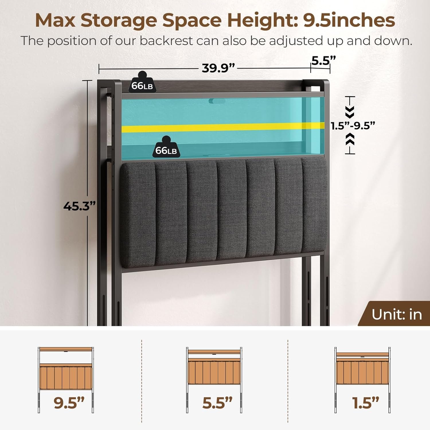 - Smart Storage: Two levels of hidden storage let you declutter with ease. Room for books, devices, and more makes it ideal as a headboard with storage solution.