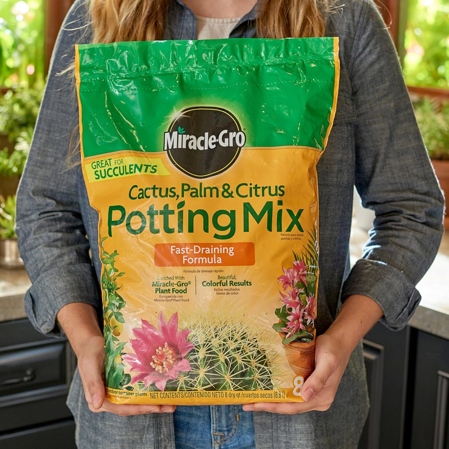 Give your succulents, cacti, palms, and citrus trees the best chance to thrive with Miracle-Gro Cactus, Palm & Citrus Potting Mix. This fast-draining formula, enriched with Miracle-Gro Plant Food, supports healthy growth for both indoor and outdoor container plants. Each 8 qt. bag fills up to two 8-inch pots, making this convenient 2-pack perfect for plant enthusiasts looking for reliable results. Trust the Miracle-Gro brand to deliver vibrant, thriving greenery with every bag.