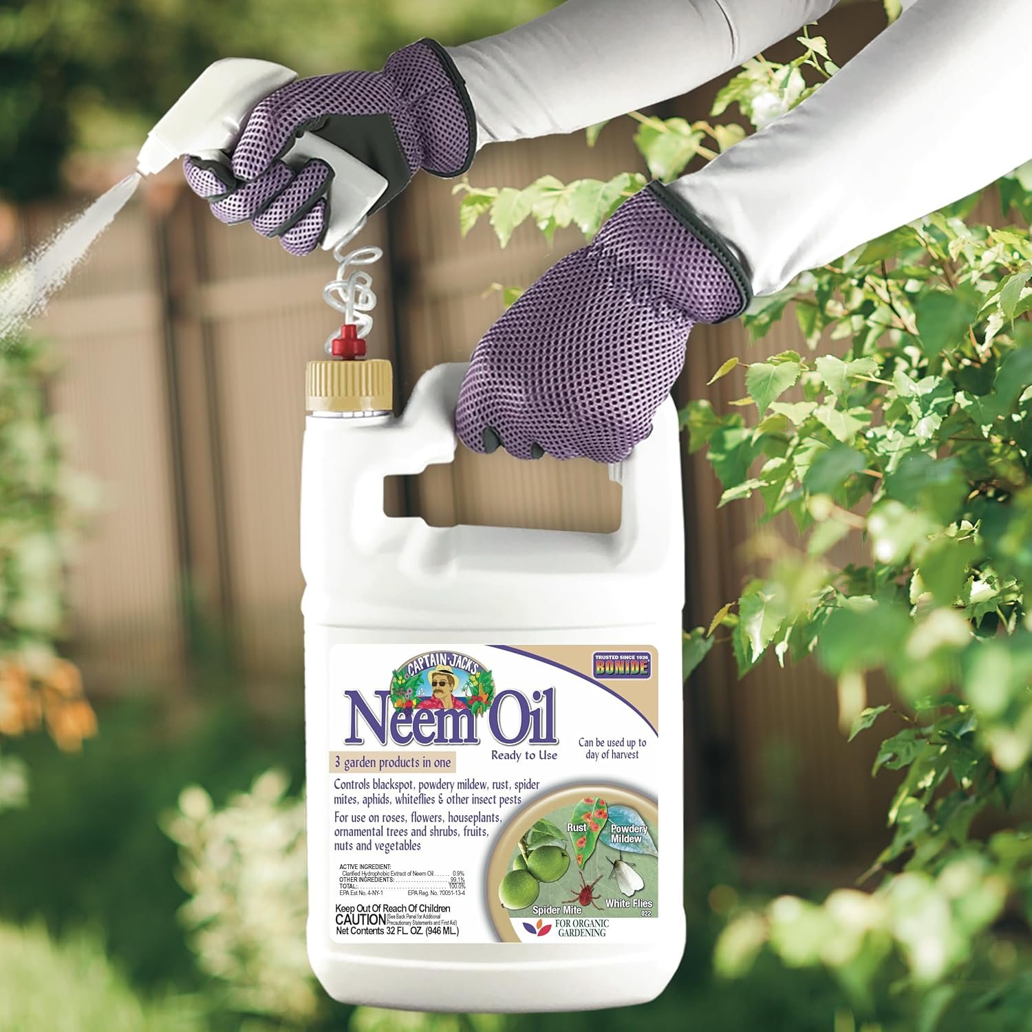 Protect your garden with Bonide's Captain Jack's Neem Oil, a 128 oz ready-to-use spray that acts as a powerful fungicide, insecticide, and miticide—all in one. This organic solution effectively controls pests like aphids and spider mites, as well as common fungal diseases such as powdery mildew on everything from houseplants to vegetables. Approved for organic gardening and safe to use up to the day of harvest, it offers peace of mind and convenience with its easy-to-use spray nozzle. Choose Captain Jack's Neem Oil for comprehensive, reliable protection and healthier plants year-round.