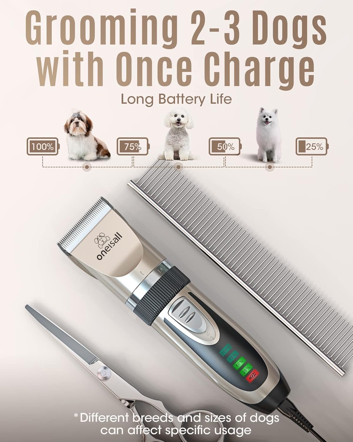 The oneisall Cordless Pet Grooming Clippers Rechargeable are a versatile and convenient grooming kit for both dogs and cats. With stainless steel blades, multiple guide combs, and an ergonomic cordless design, trimming pet fur at home is comfortable and efficient. The rechargeable battery provides freedom of movement while grooming, and the user-friendly grip ensures precise control. Check them out today for a budget-friendly, effective pet grooming solution you can use anytime!