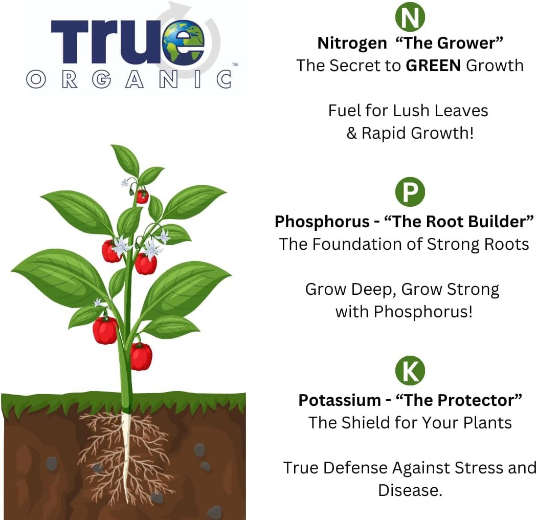 The True Organic All Purpose Liquid Plant Food from True Organic Store is a premium, 100% organic liquid fertilizer, ideal for growing healthy fruits, vegetables, herbs, and flowers. Certified by CDFA and OMRI for organic gardening, this pet-friendly plant food is made in the USA with ethically sourced, farm-grade ingredients to ensure clean and safe edible gardening. Its nutrient-rich NPK 3-2-2 formula covers up to 30 sq ft per bottle, supporting vibrant, bountiful plants and soil regeneration. Perfect for gardeners seeking a high-quality, natural solution for all their planting needs.