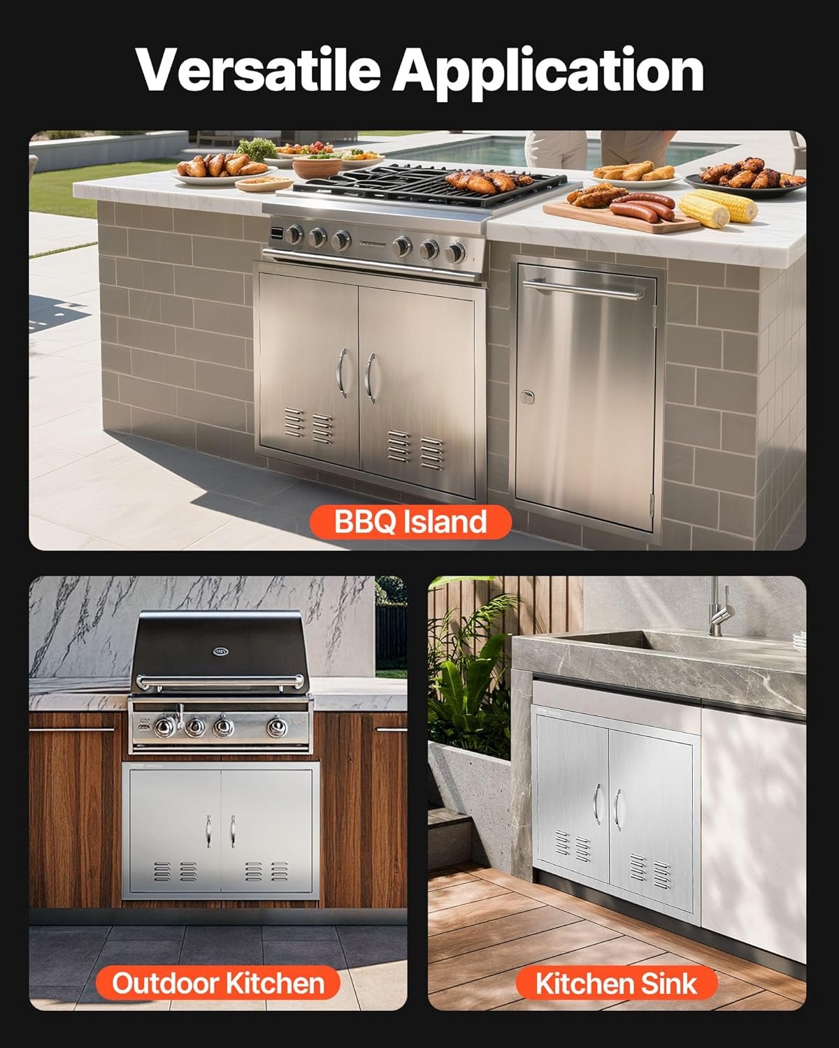 Outdoor doors play a pivotal role in any patio kitchen, ensuring both style and function in your grilling setup. Whether you’re upgrading your grill island or starting fresh, this product from VEVOR delivers durability, versatility, and a user-friendly experience for outdoor chefs and hosts alike.